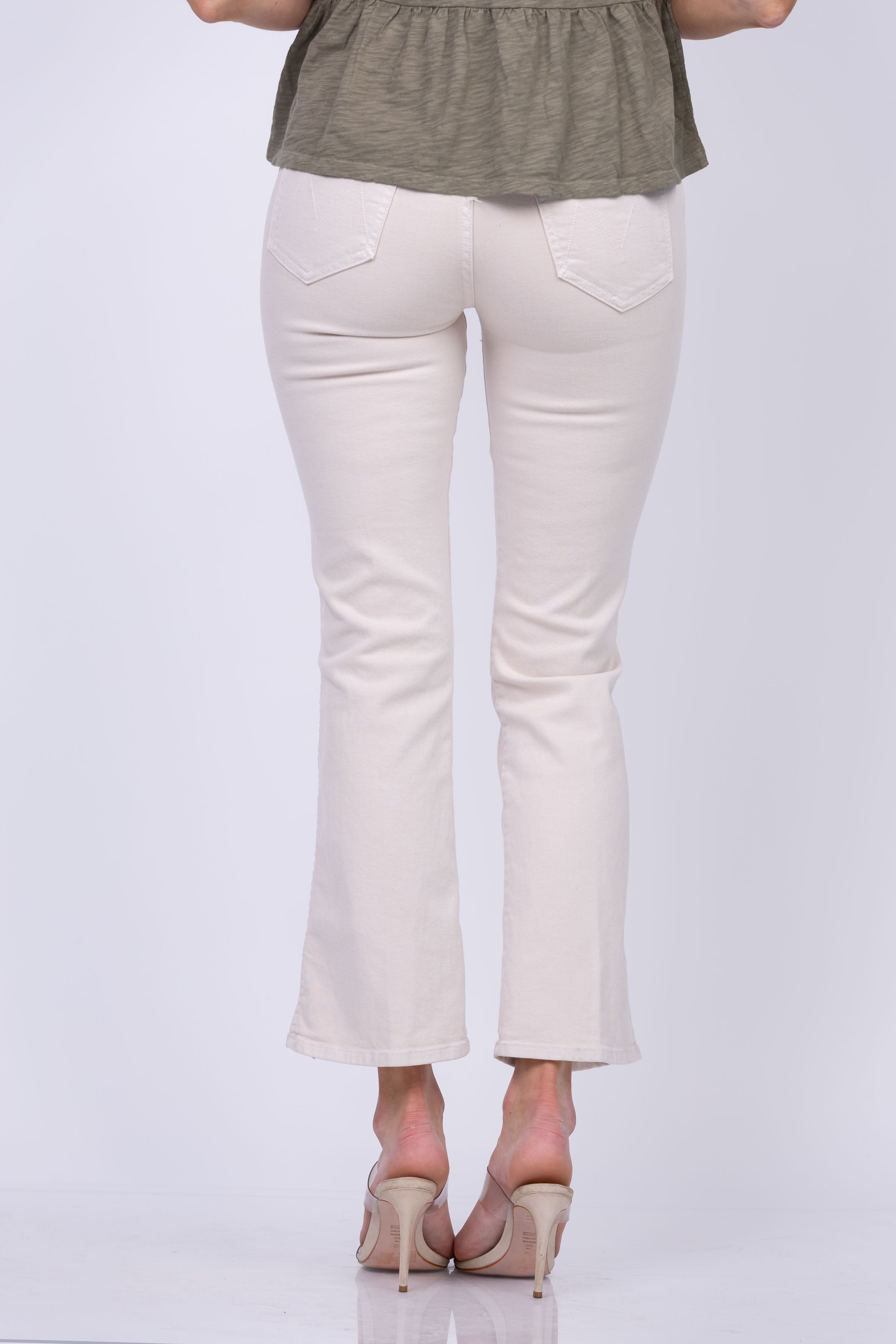 Step out in style with our Mother Mid Rise Smokin Double Flood Jeans in Tapioca Cats And Dogs Print. These mid-rise pants feature a flattering flared leg and a clean hem, with a 28.25-inch inseam for the perfect fit.