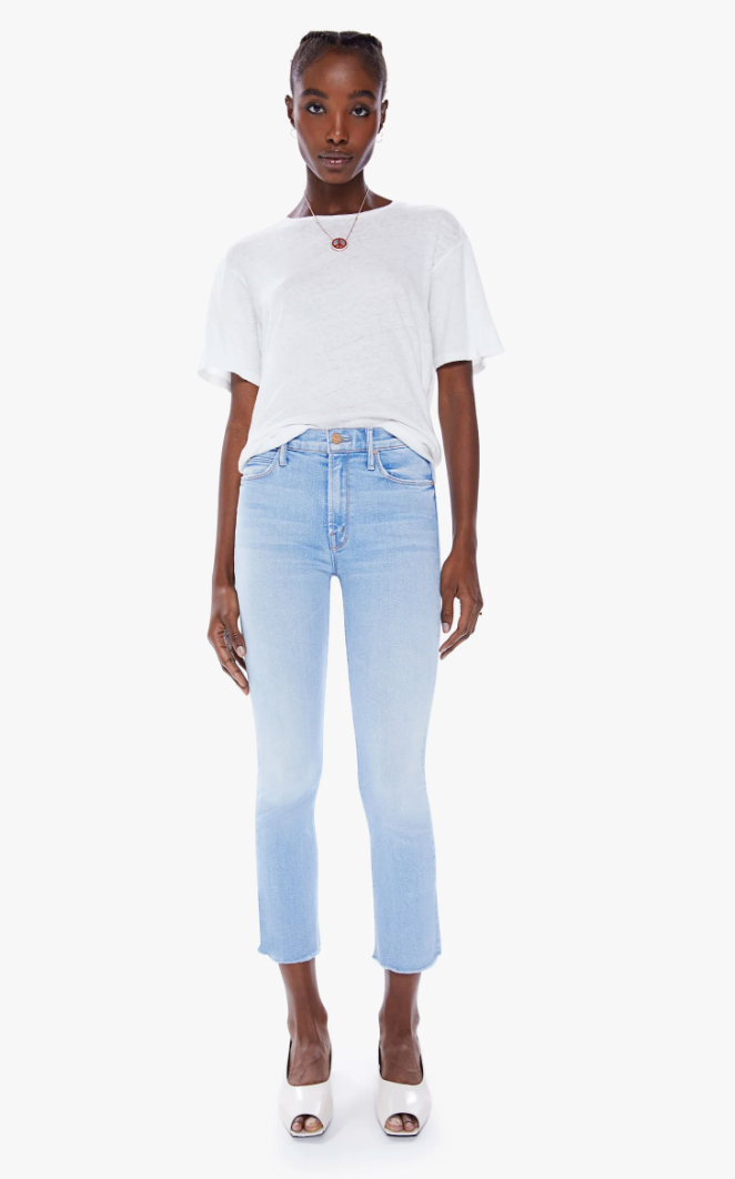 Experience effortless style with the Mother The Mid Rise Dazzler Crop Fray in Sun Kissed. This fan-favorite light wash denim offers a flattering mid-rise fit and a trendy cropped length with frayed hems, perfect for warm days and casual outings. Its versatile design pairs seamlessly with your favorite tops and shoes, making it a must-have addition to your wardrobe. Embrace comfort and chic in one standout piece.