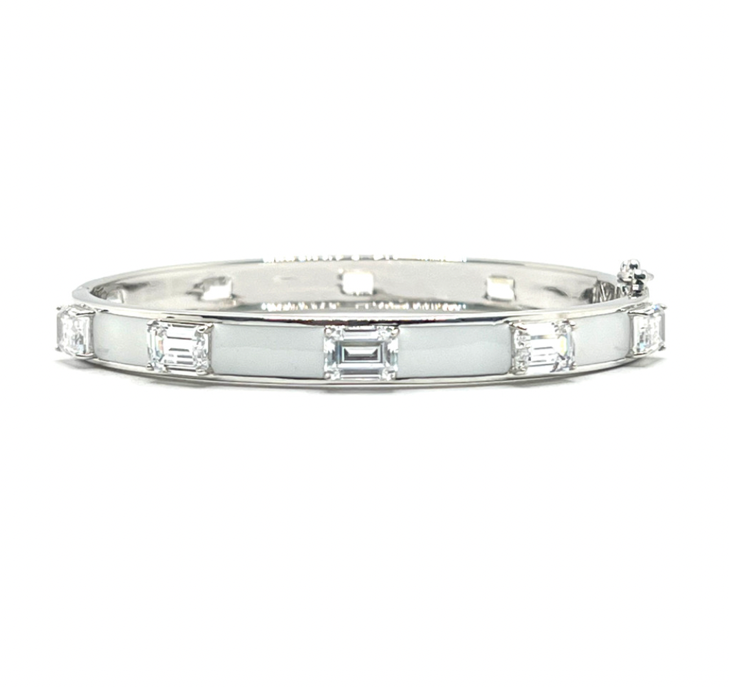 Bijoux Num Skinny Emerald-Cut White Enamel Bangle