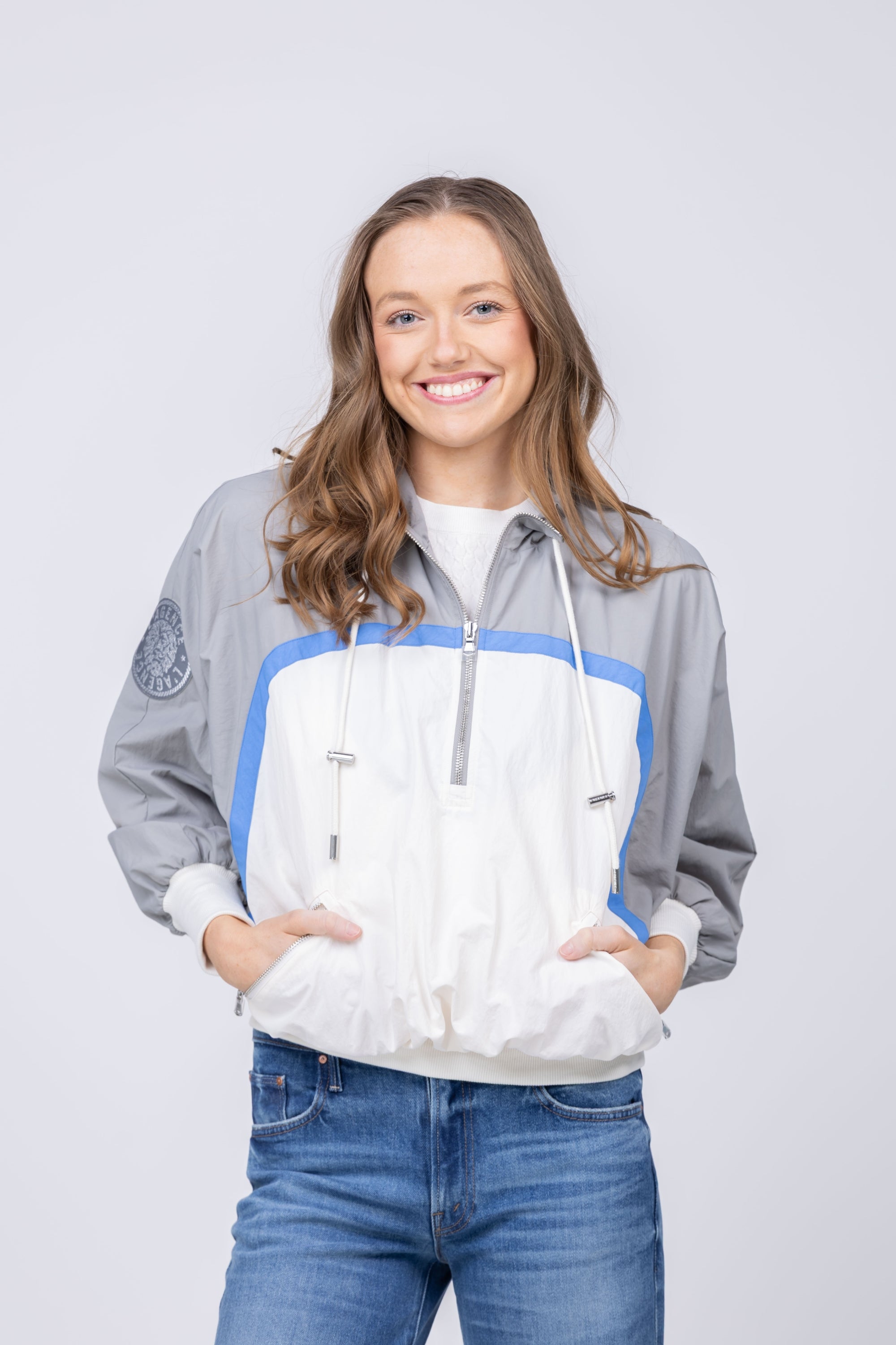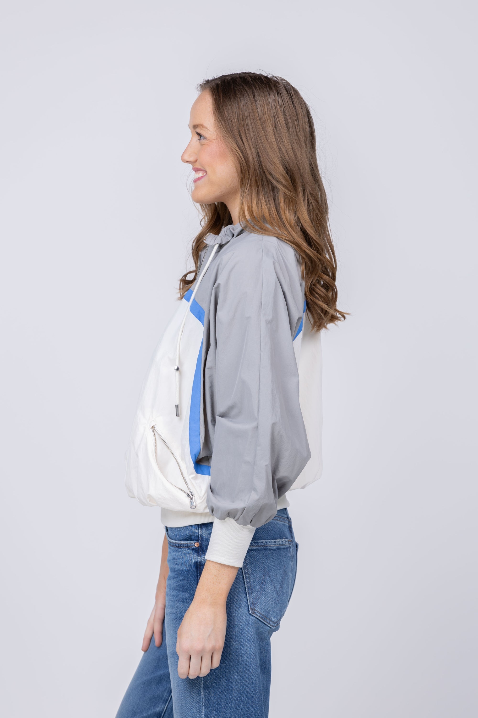 L'AGENCE Aurelia Windbreaker in Light Grey/Regatta Blue/Ivory