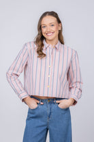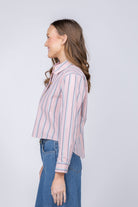 L'AGENCE Cosette Crop Hi Low Shirt in Pale Rose Stripe