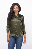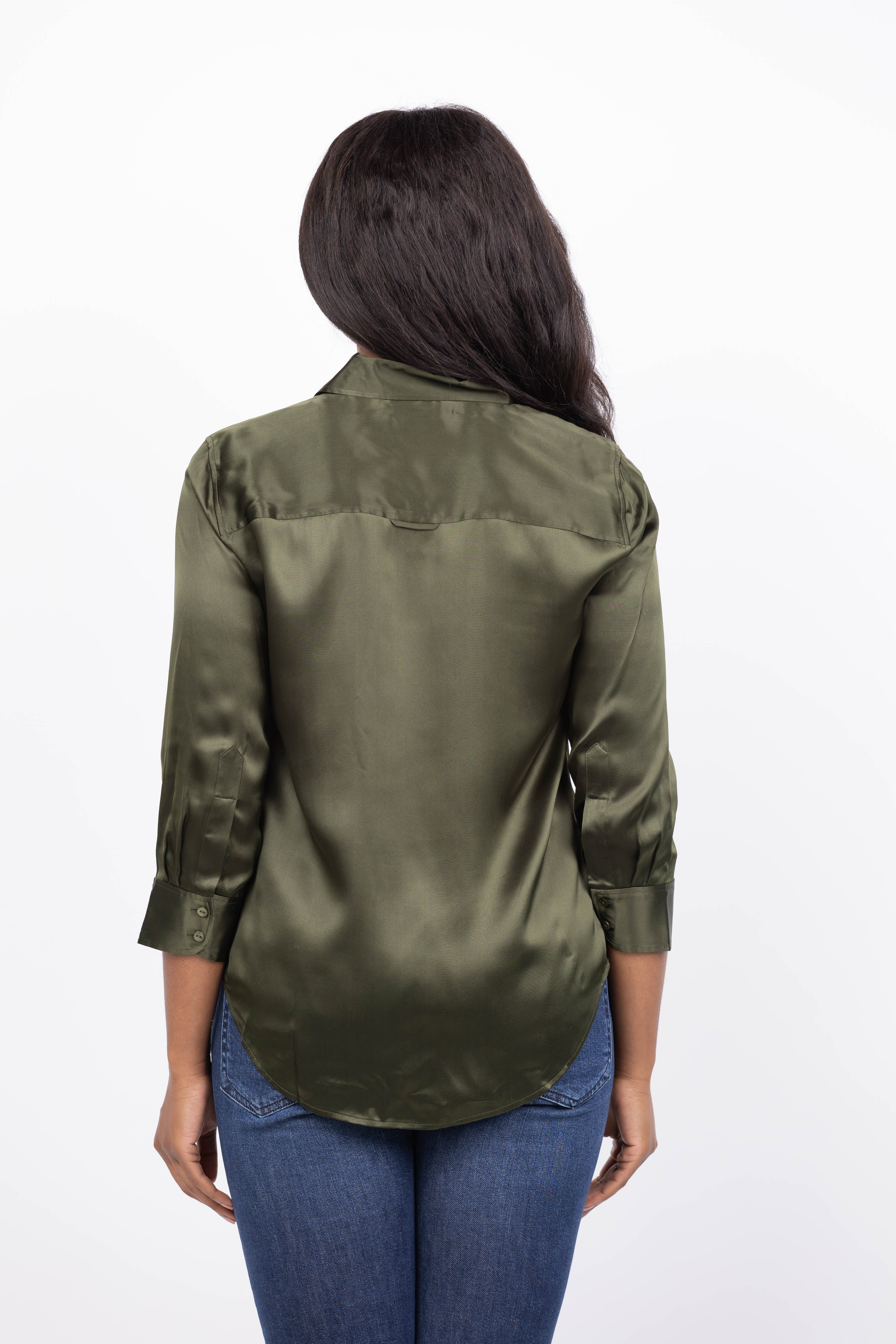 L'Agence Dani 3/4 Sleeve Blouse in Deep Olive