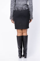 Elevate your essentials with the Olyvia pencil skirt, a refined staple designed to flatter and inspire confidence. This sleek silhouette skims the curves beautifully, cinching at the waist while hitting just above the knee for a universally flattering proportion. Constructed from premium stretch suit fabric, it moves with you throughout the day while maintaining its polished shape. The discreet zip closure ensures a seamless finish. From boardroom presentations to evening occasions, this versatile black skirt pairs seamlessly with everything in your closet, making it the one piece you'll reach for again and again.