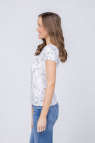 The Ressi remains the wardrobe essential that never goes out of style. Beloved season after season, this bestselling tee combines a buttery-soft stretch jersey knit with a refined fitted cut that flatters effortlessly. The faded chain print in ivory and gray adds understated sophistication to your everyday basics, offering just enough visual interest without overwhelming your look. Versatile enough to pair with anything from denim to tailored trousers, the Ressi works as a standalone piece or layered under your favorite jackets and sweaters.