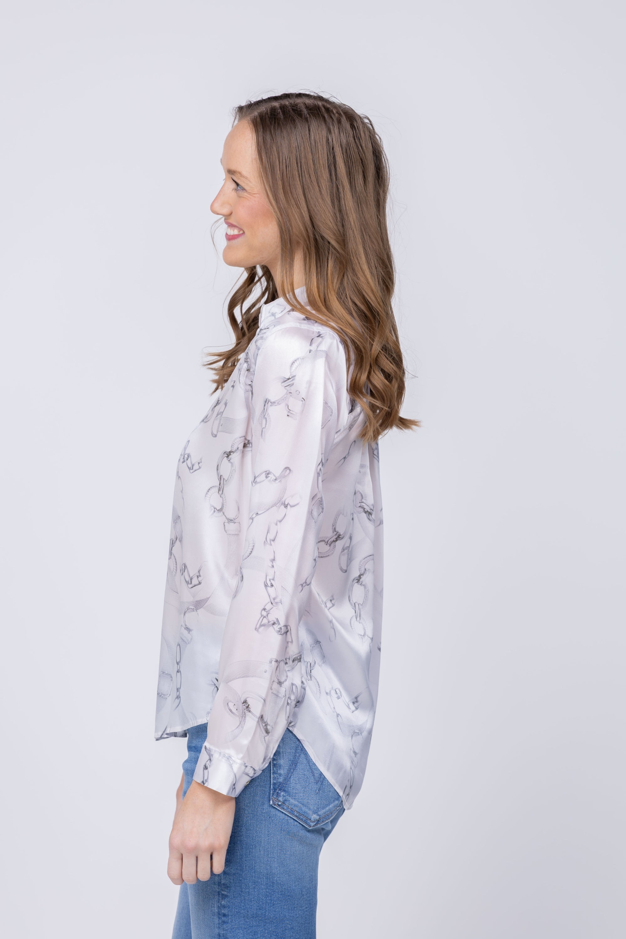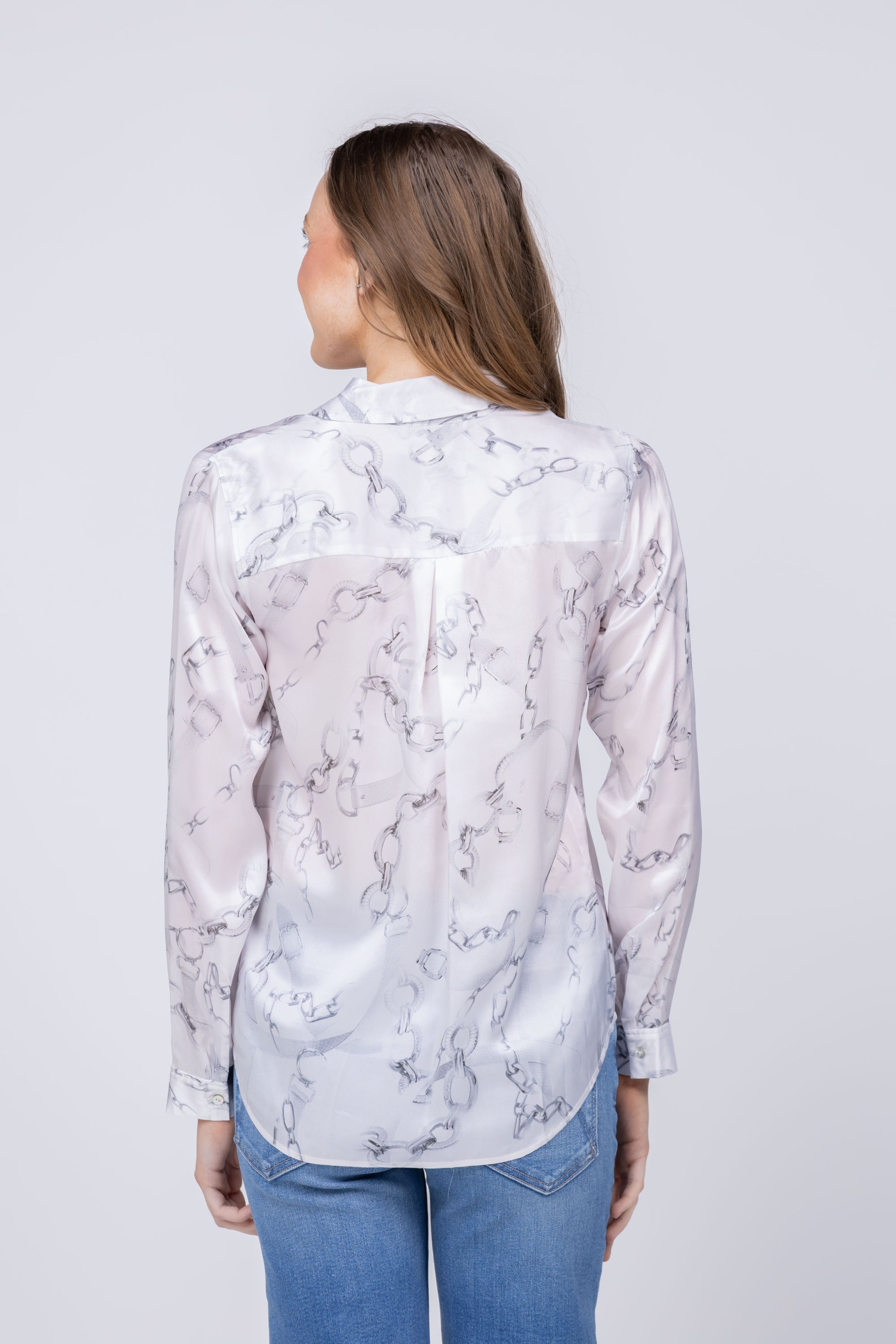 L'AGENCE Tyler Blouse in Ivory/Grey Small Faded Chain