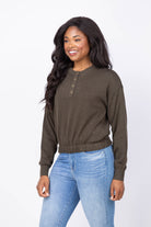 Lilla P Elastic Waist Henley Sweater in Fir
