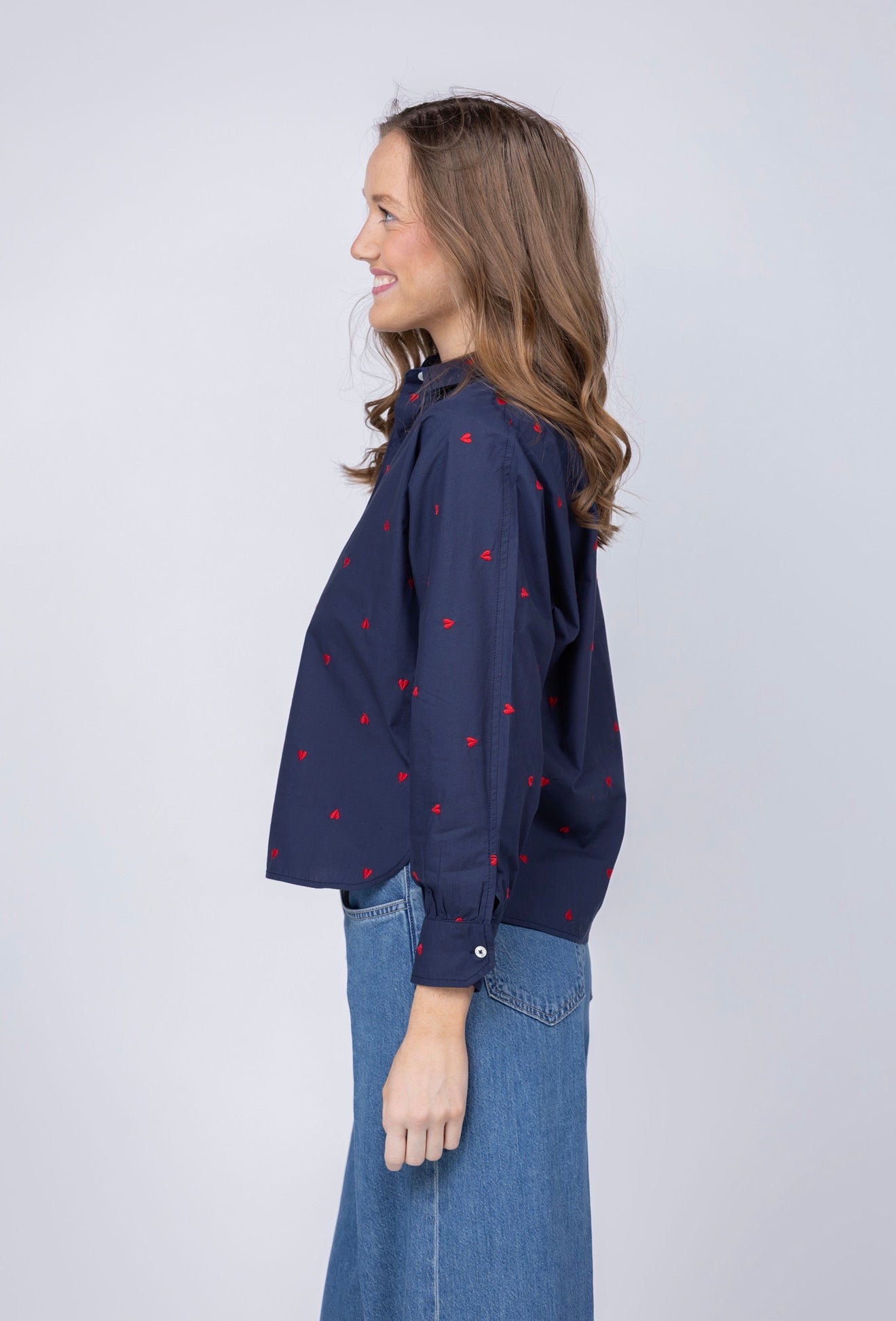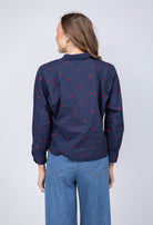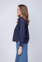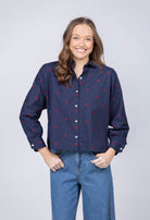 Lilla P Embroidered Hearts Button Down in Navy