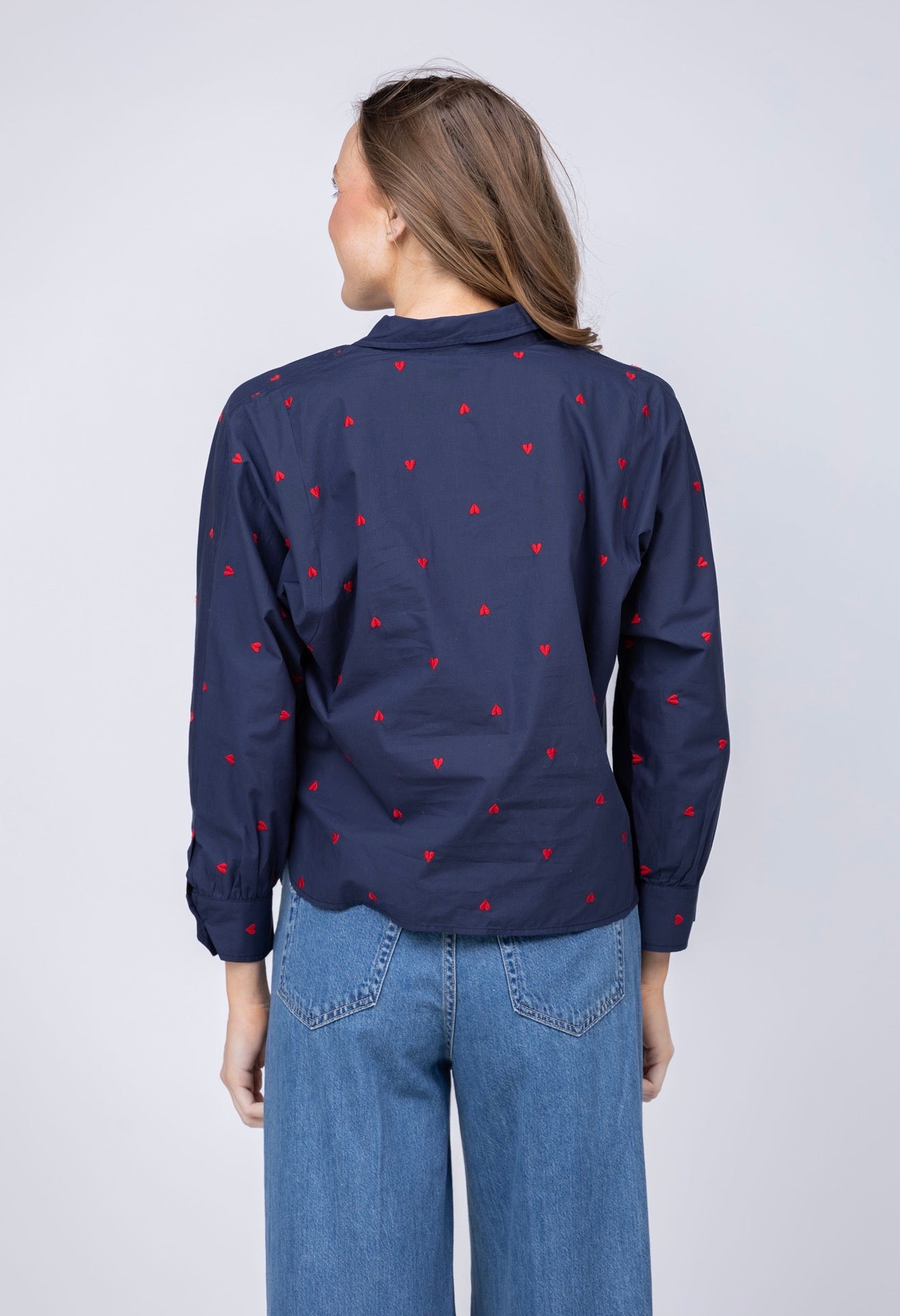 Elevate your everyday wardrobe with this charming Lilla P button down, featuring delicate embroidered hearts that add a touch of whimsy to classic style. Crafted for comfort and versatility, the navy hue pairs effortlessly with jeans, trousers, or skirts for endless outfit possibilities. Perfect for those who appreciate thoughtful details and quality construction, this piece transitions seamlessly from casual weekends to polished workdays. A wardrobe essential that brings personality and sophistication to your closet.