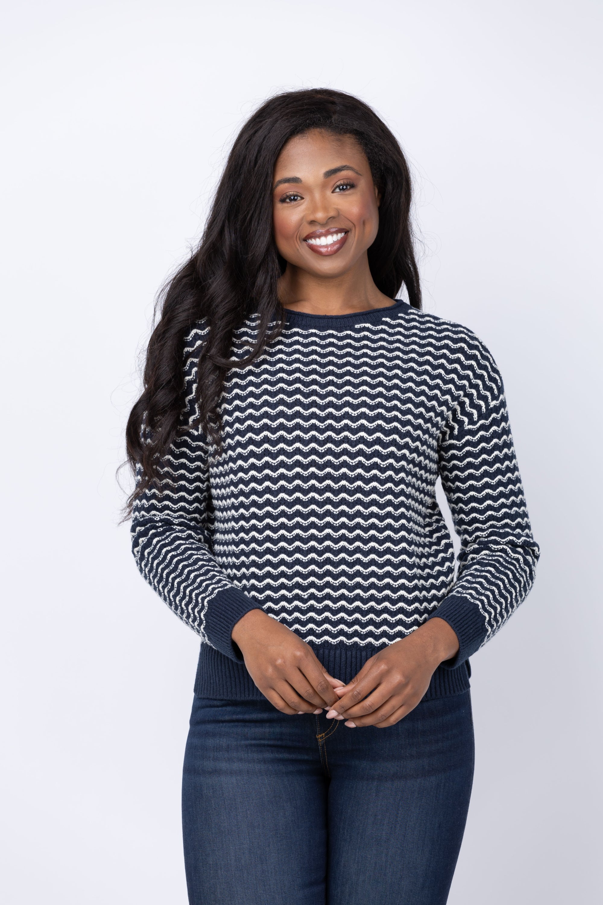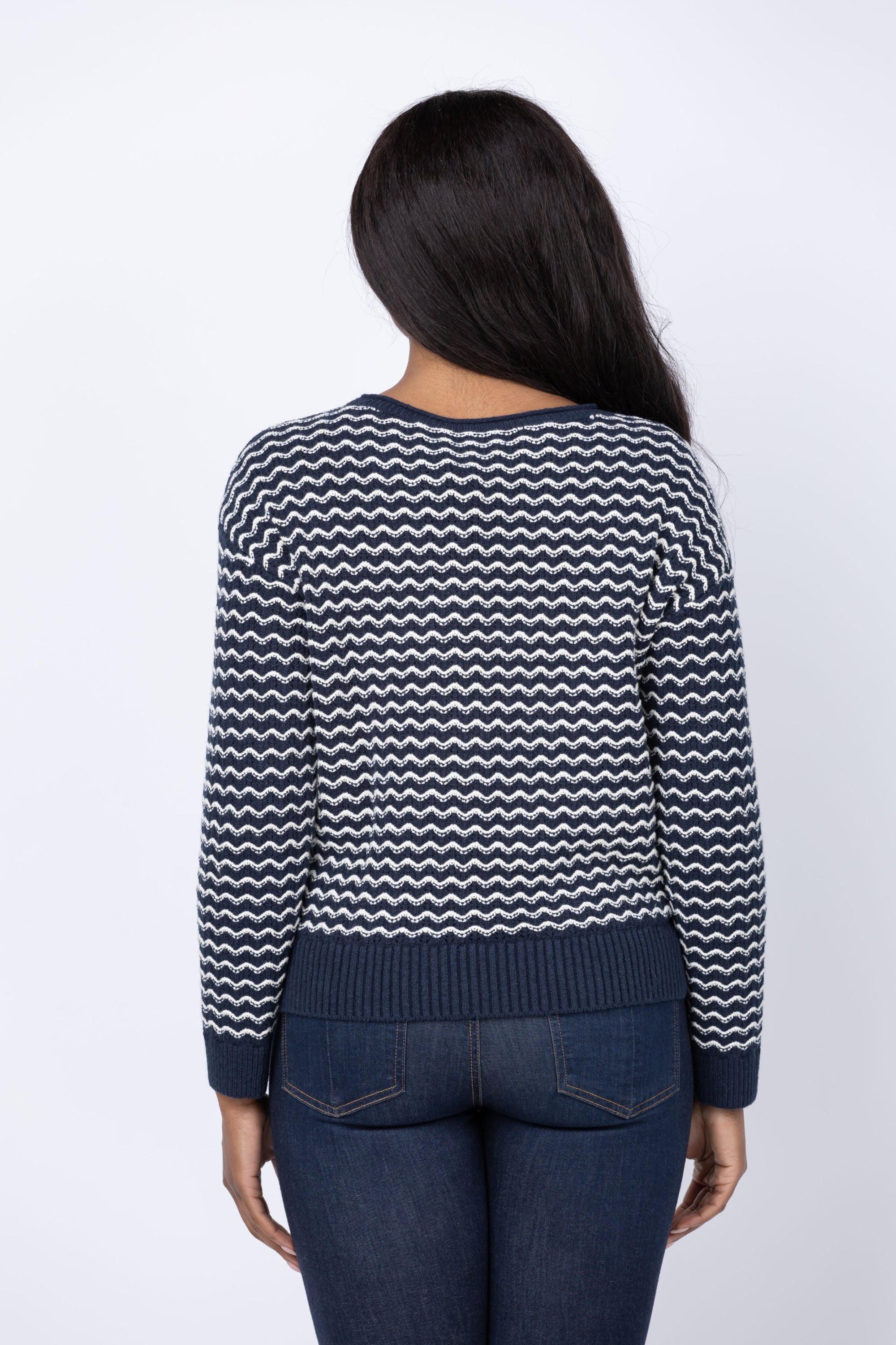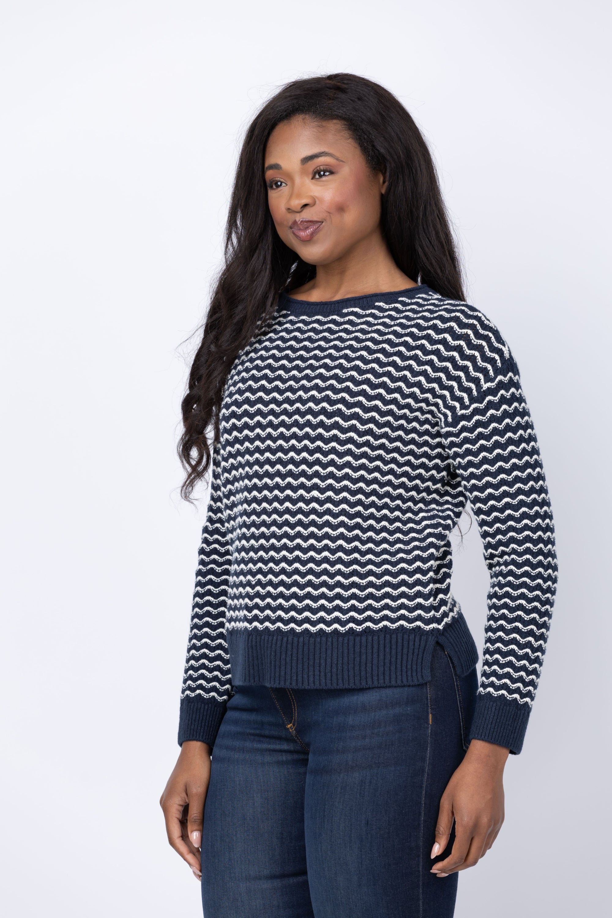 Lilla P Long Sleeve Zig Zag Sweater in Navy Zig Zag