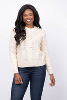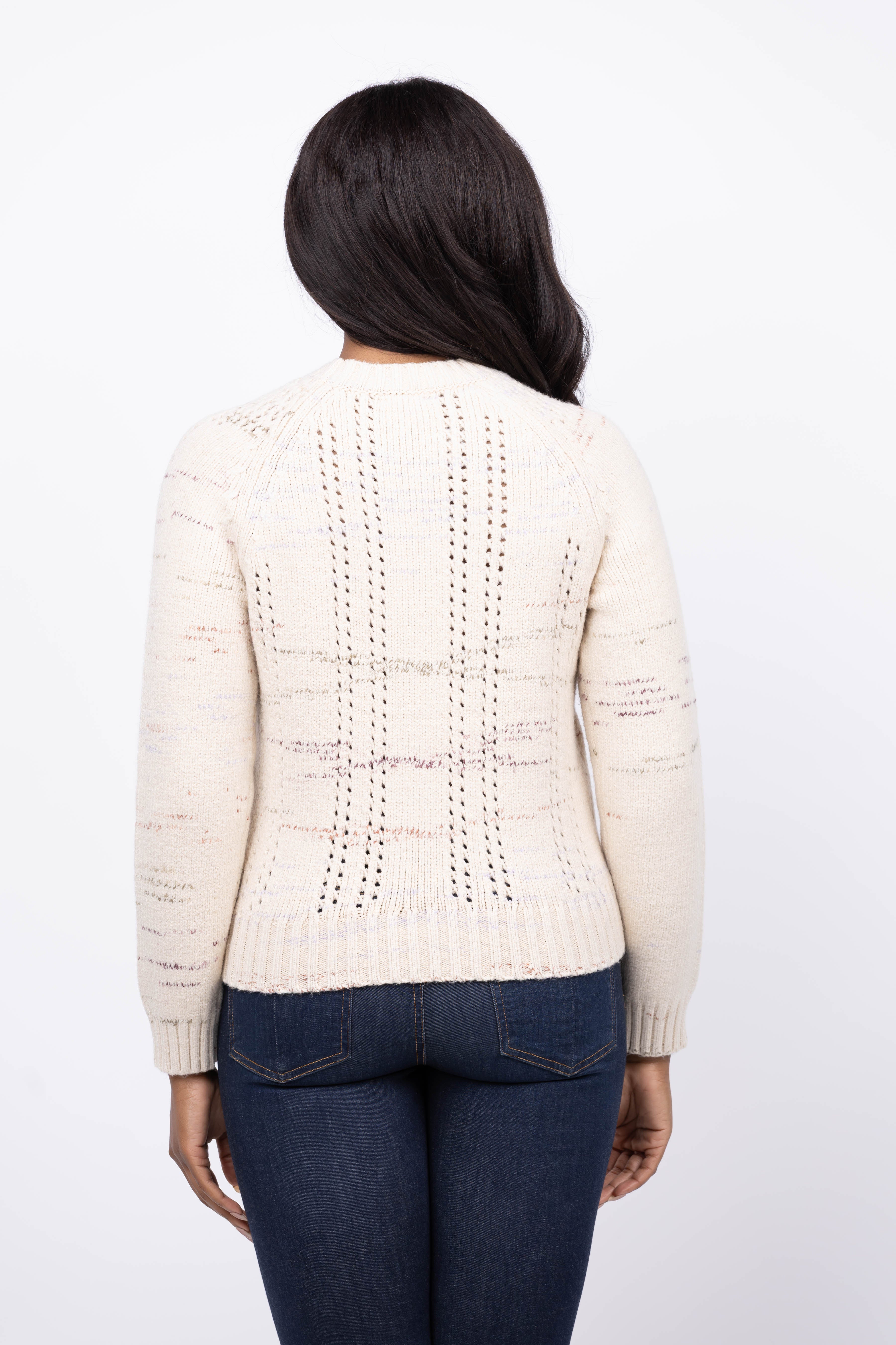 Lilla P Open Stitch Crewneck Sweater in Eggshell Combo
