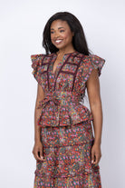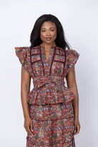 The Madelyn Top in Harlequin Print is a stunning piece filled with delicate details and finished with flutter sleeves and a peplum hem. The intricate gathers, pintucks, and lace trim make for a cinched yet feminine silhouette that will make a statement.