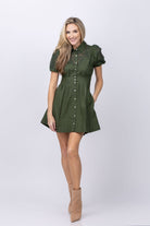 Elevate your style with the Love The Label Marta Mini Dress in Olive. This stunning mini dress features intricate embroidery on the front yoke and sleeves, adding a touch of elegance to your fall wardrobe. The button front silhouette gives a flattering fit, making it perfect to pair with your favorite boots for a chic and stylish look.