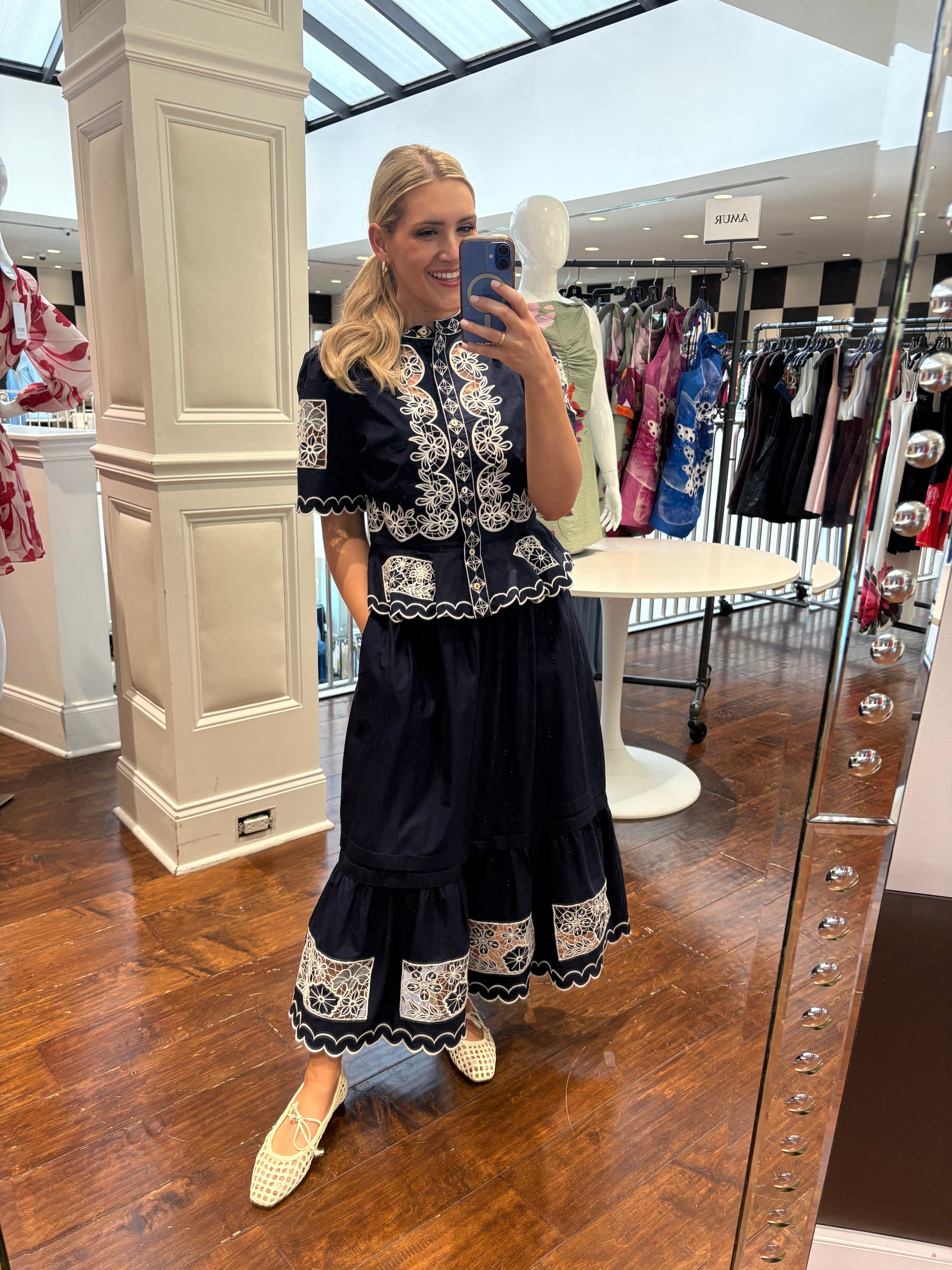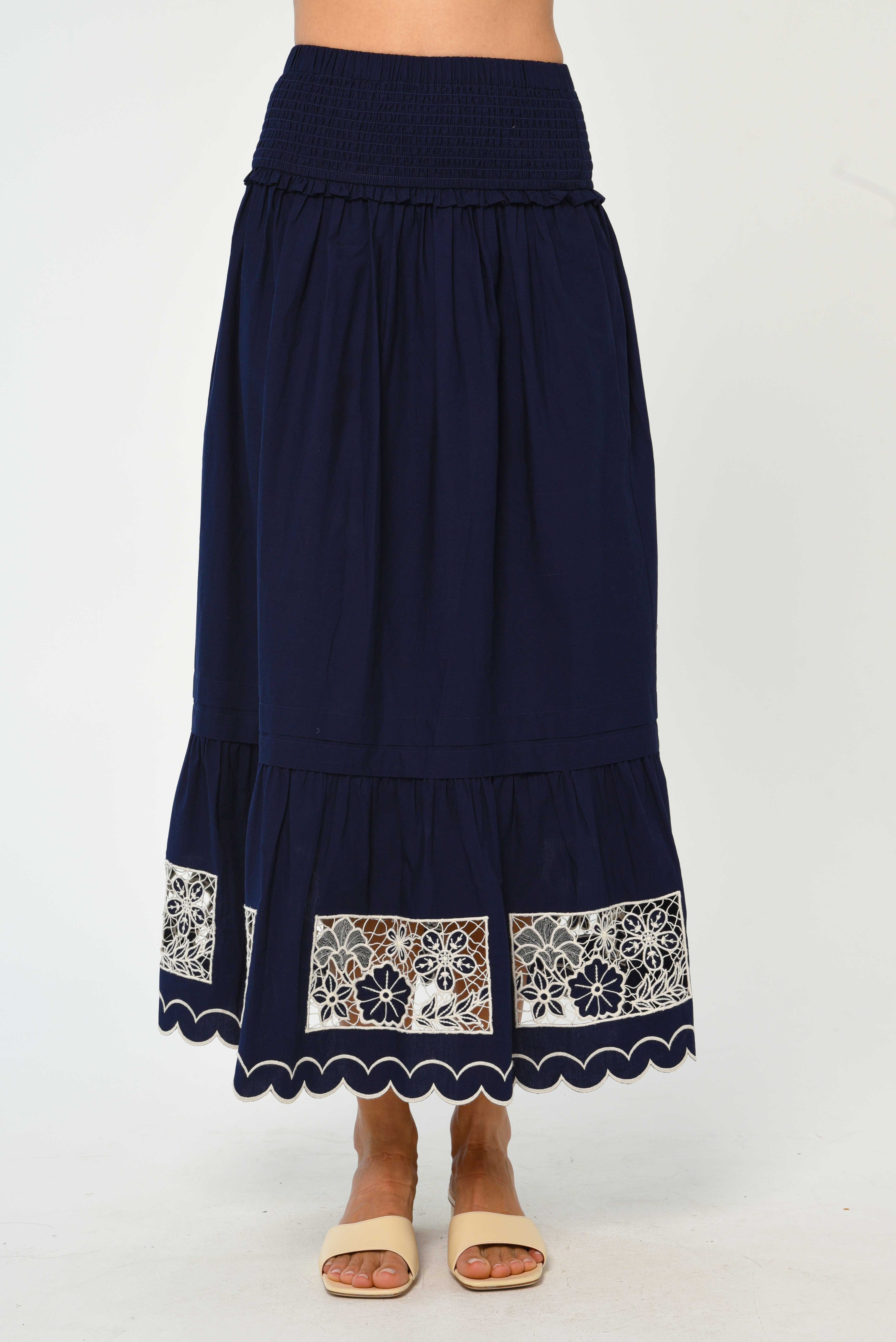 Love The Label Nolan Skirt in Navy w/ Ivory Embroidery