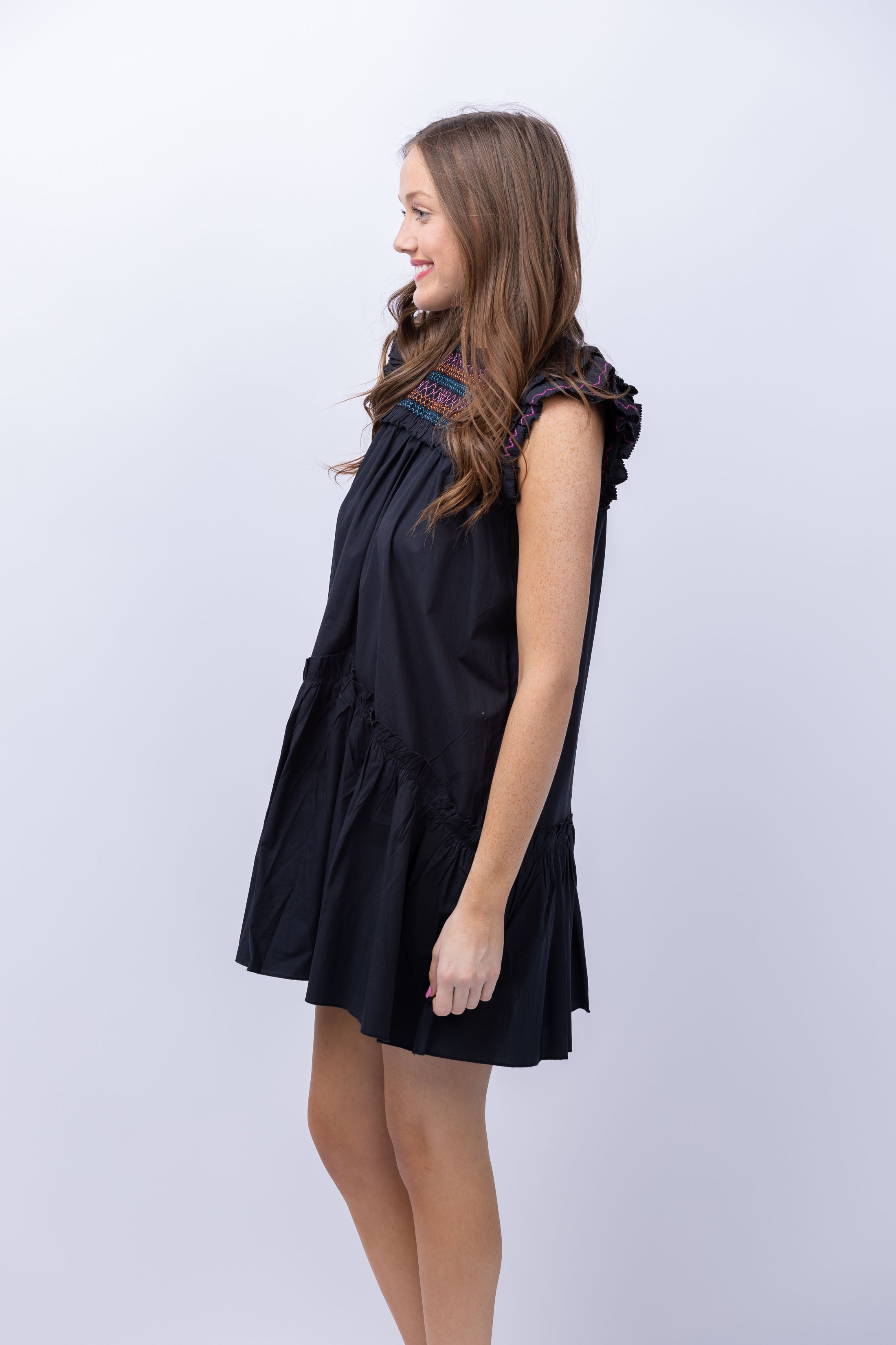 Feel the love in the Love The Label Poppy Dress! This versatile dress features flirty flutter sleeves and colorful details on a classic black silhouette. Perfect for any occasion, dress it up or down with sneakers or sandals for an effortless look. Fall in love with the ease and style of this dress!