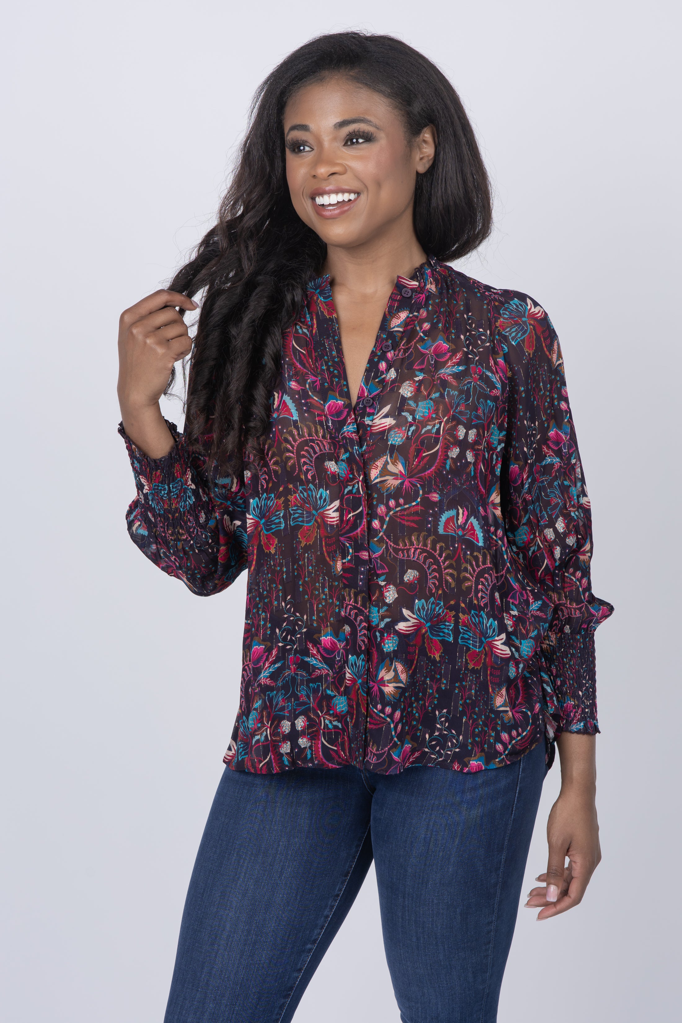 Discover the timeless beauty of the Maria Cher Palermo Julieta blouse. Crafted from luxuriously soft fabric, it features a gorgeous unique print in an eye-catching ocean blue finish. Perfect for Fall, pair this statement blouse with your favorite jeans and suede boots for a truly timeless look.