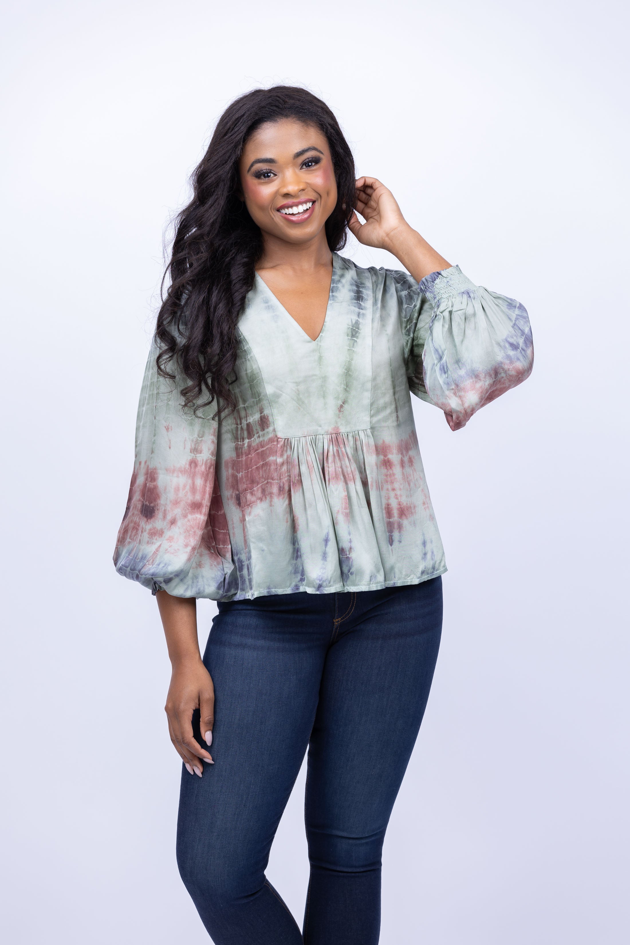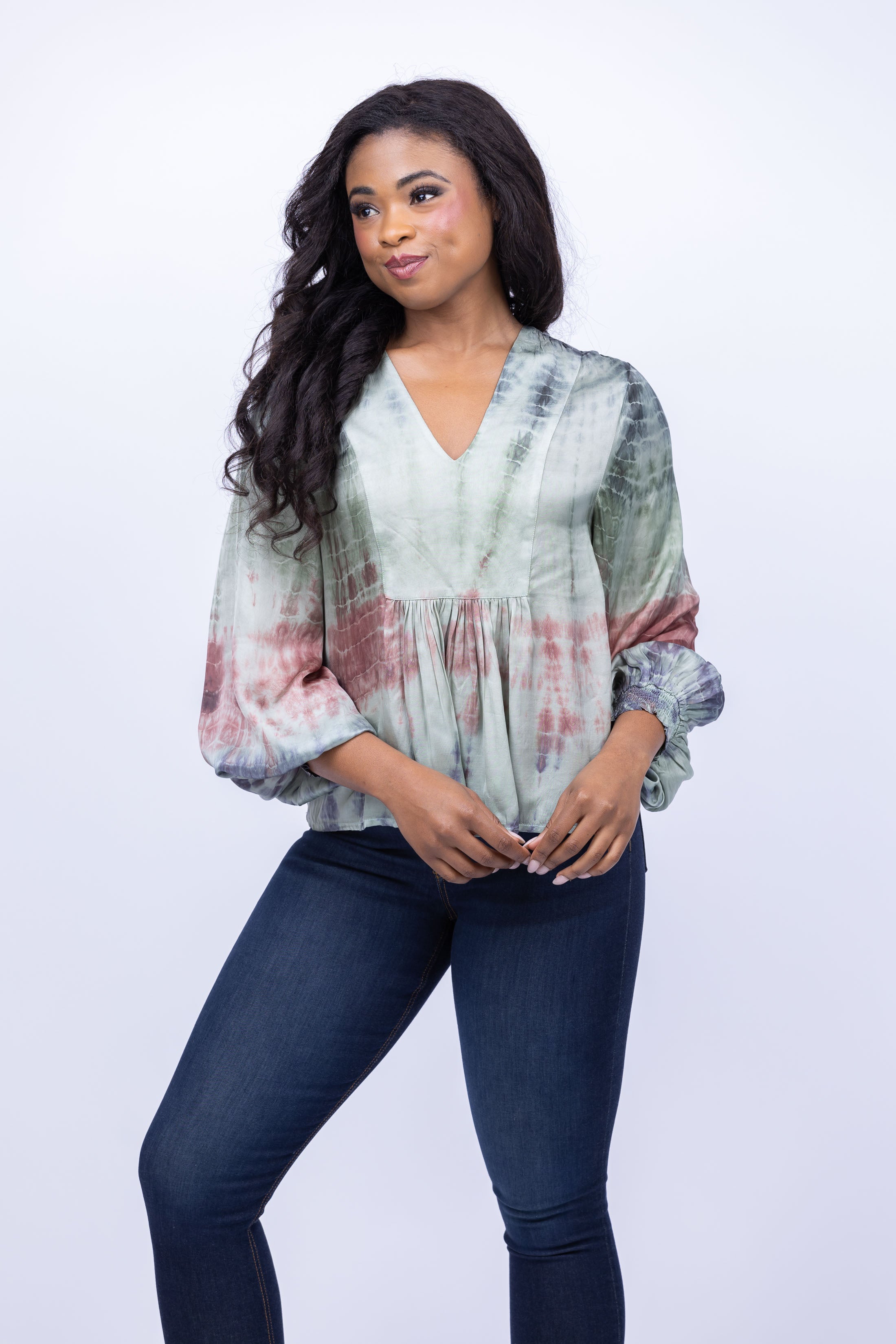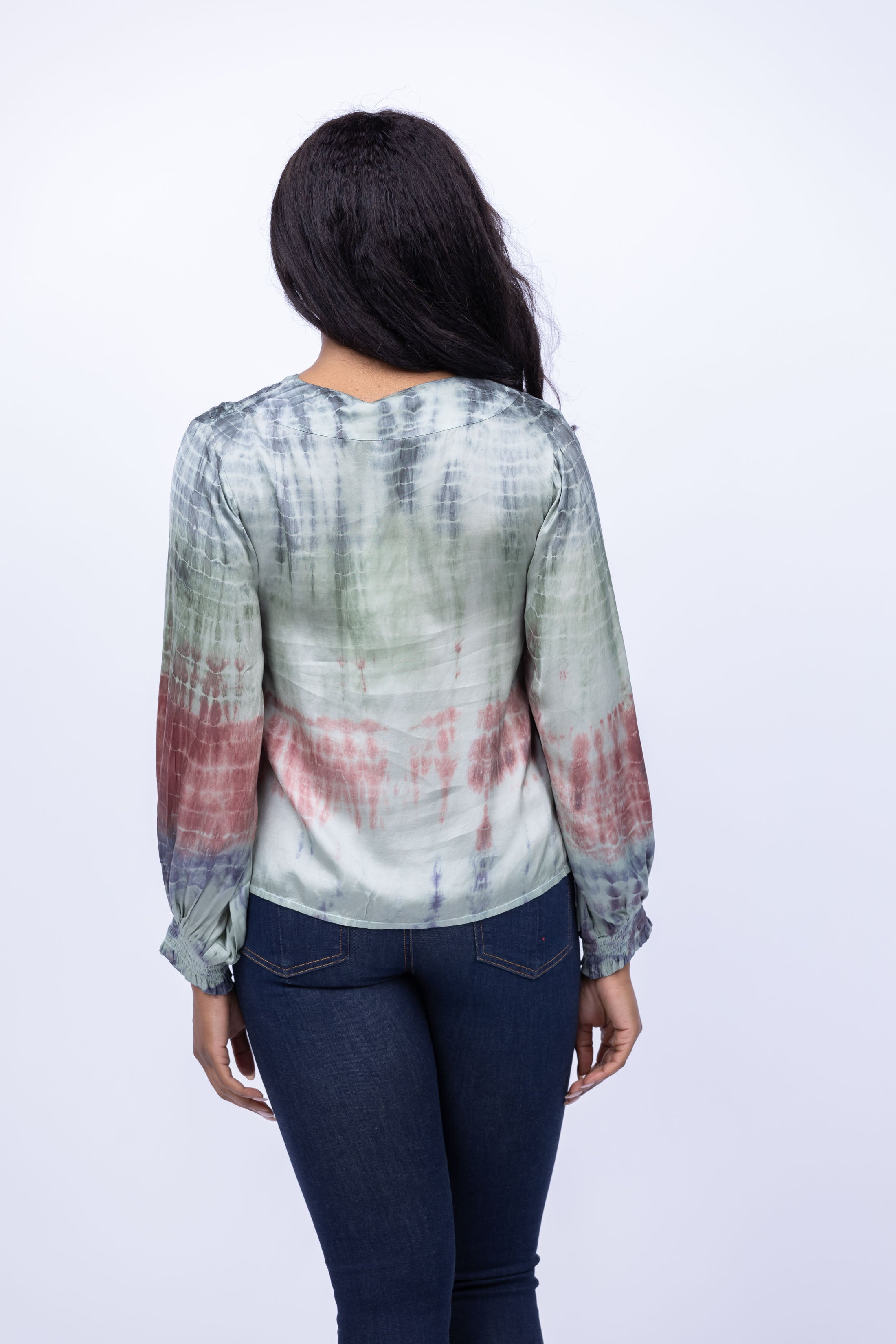 The Maria Cher Tortuguitas Vesta Blouse brings a vibrant edge to your everyday wardrobe. Featuring a playful tie-dye design with a plunging v-neck, this statement blouse is complemented with a voluminous balloon sleeve. Crafted from luxurious fabric, pair it with your favorite jeans and let the colors take center stage. Make a statement and get ready to turn heads.