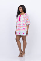 Juliet Dunn Boho Mexican Print Cover-Up in Fuchsia
