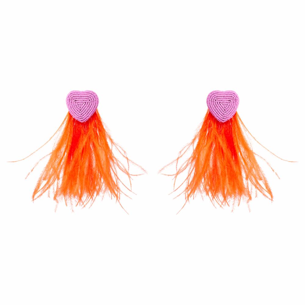 Inspire romance and elevate your style with Mignonne Gavigan's Cupid Earrings. A perfect accessory for Valentine's season, these earrings bring drama and flair with pink embroidered heart toppers and lavish orange feather accents. Make a bold statement and ignite the flames of passion with this unforgettable pair.