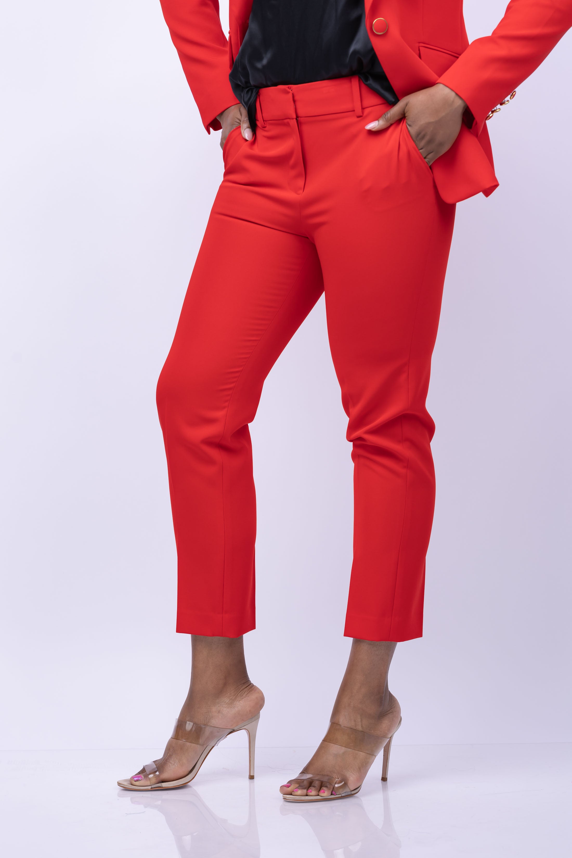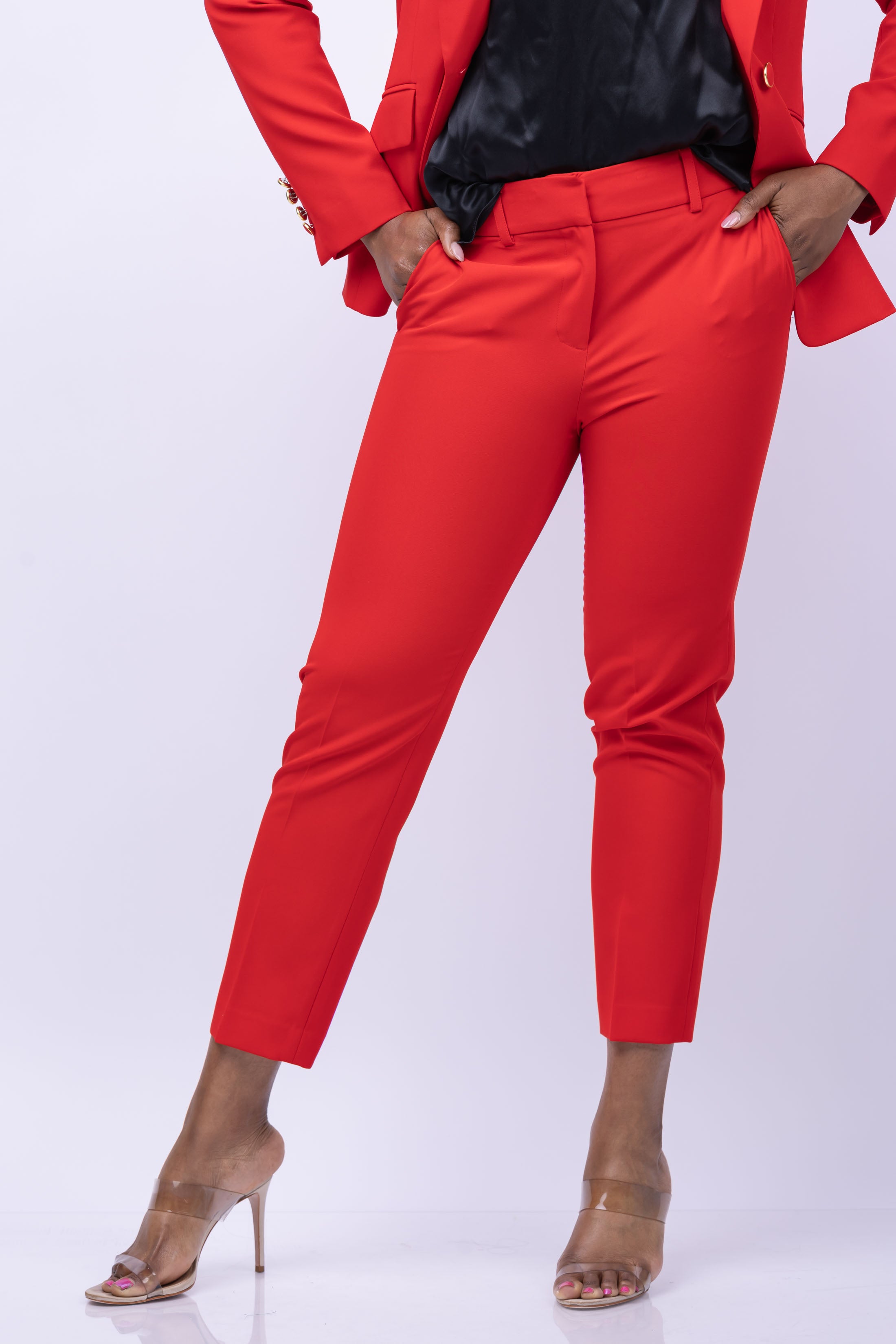 Get ready to make a statement with Milly's Nicola Cady Pant in red! Cut from a structured Cady fabric, these versatile pants are designed to be an off-the-moment ankle length with a medium rise and straight leg. Perfect for day or night, style with loafers or ankle strap heels.