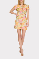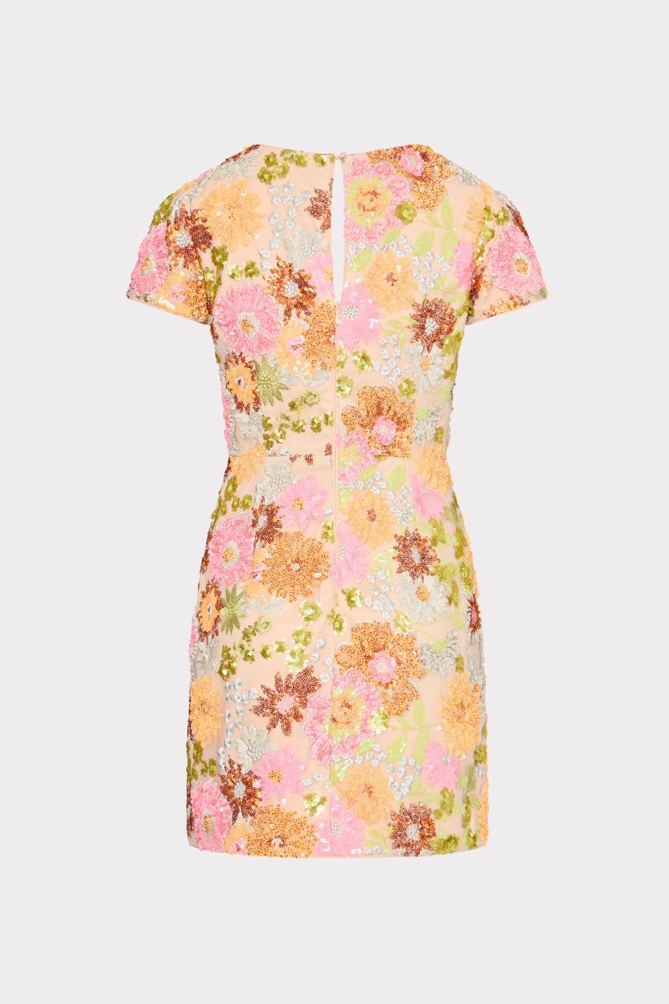 The Milly Rowen Lace Dress in Orange Multi combines vibrant color with elegant design, featuring a fitted silhouette and short sleeves for a flattering fit. Its dazzling sequin floral details on a delicate mesh overlay add a glamorous touch, perfect for parties, date nights, or special events. Fully lined with a convenient back zipper closure, this mini dress ensures comfort and style, making you the center of attention wherever you go. Elevate your wardrobe with this stunning piece that effortlessly blends sophistication and sparkle.