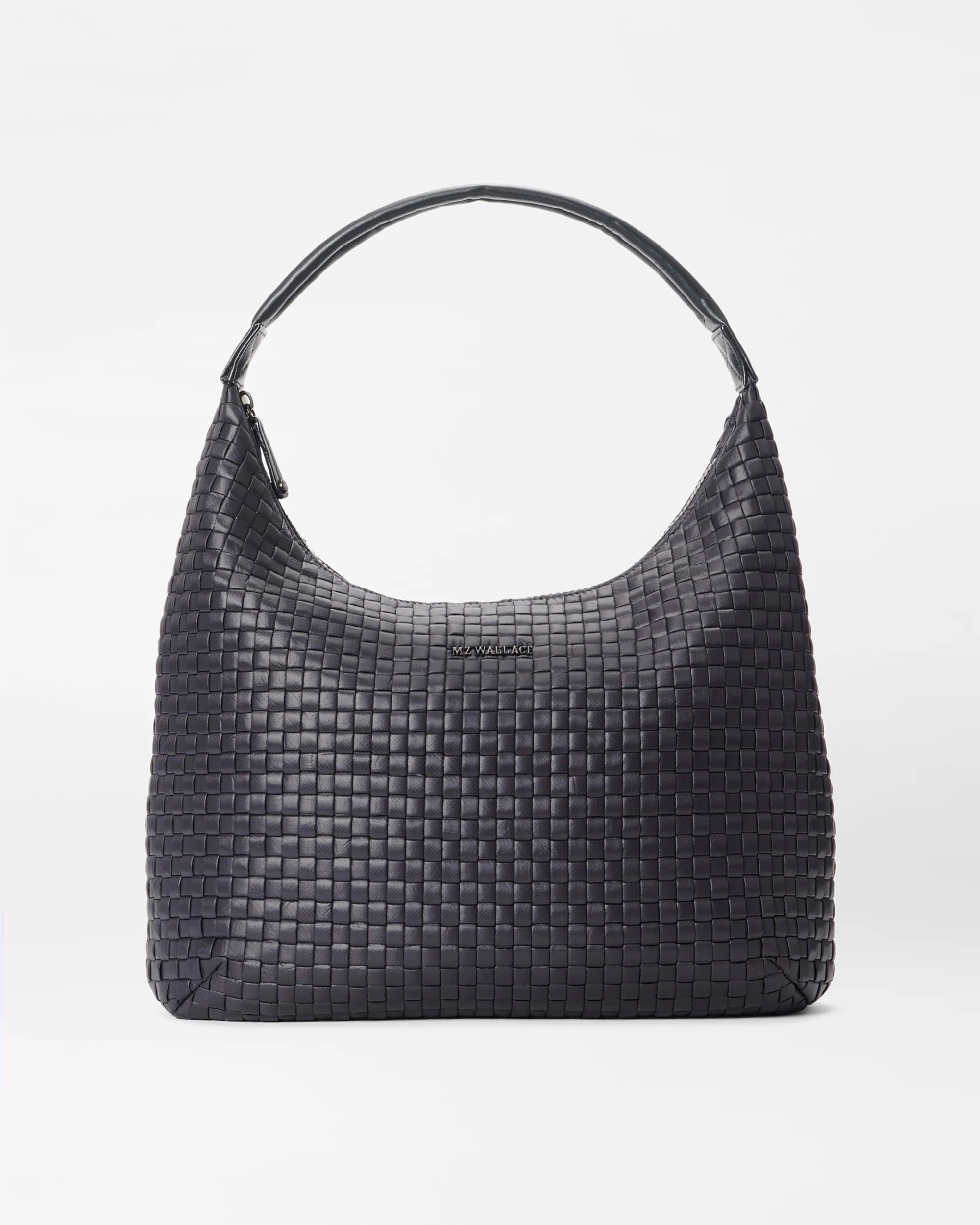 A woven nylon exterior brings textural intrigue to a spacious shoulder bag furnished with a removable pouch for easy organization.