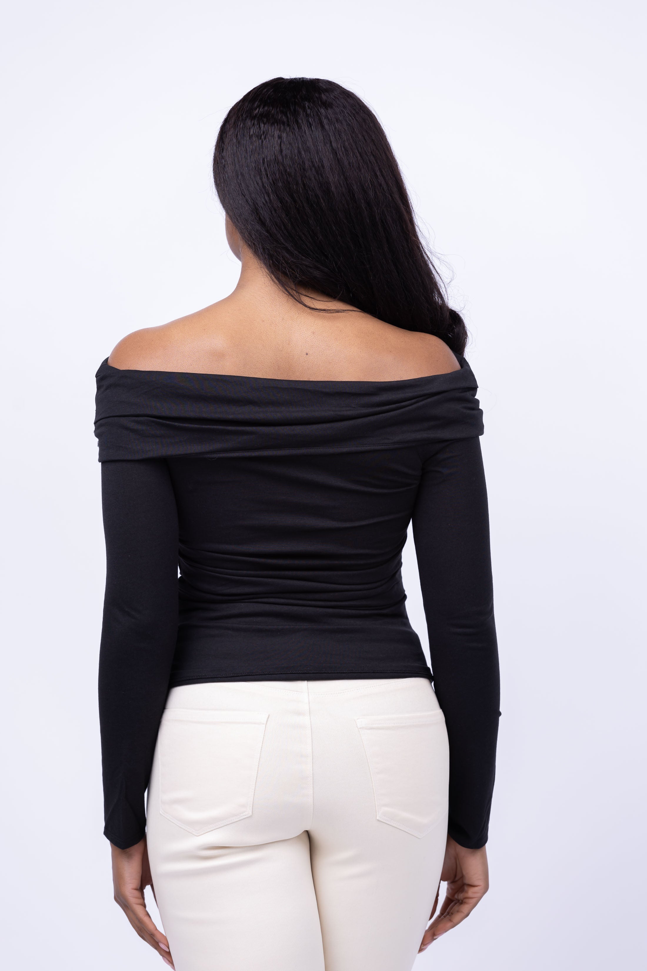 NATION LTD Abana Draped Off-the-Shoulder Top in Jet Black