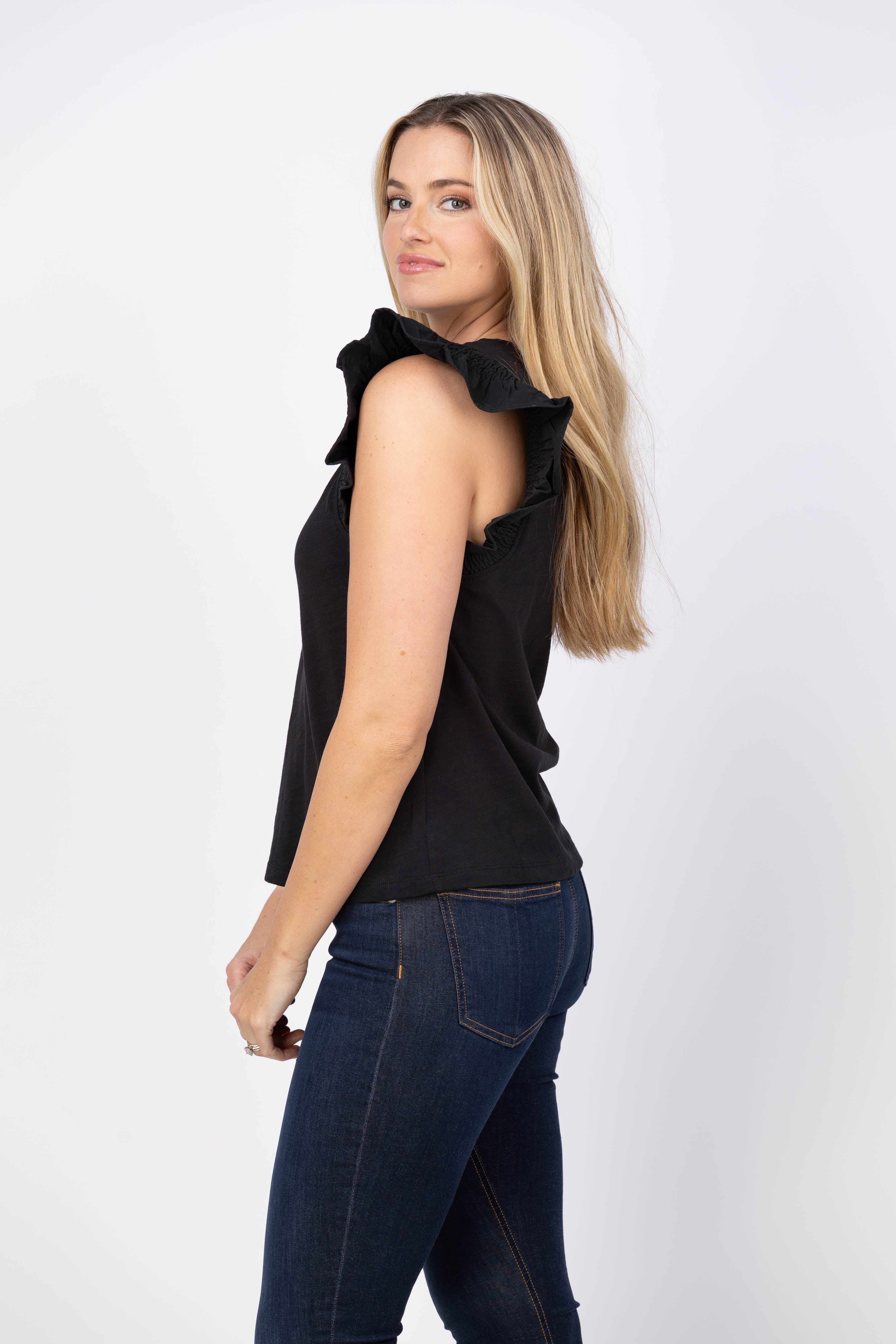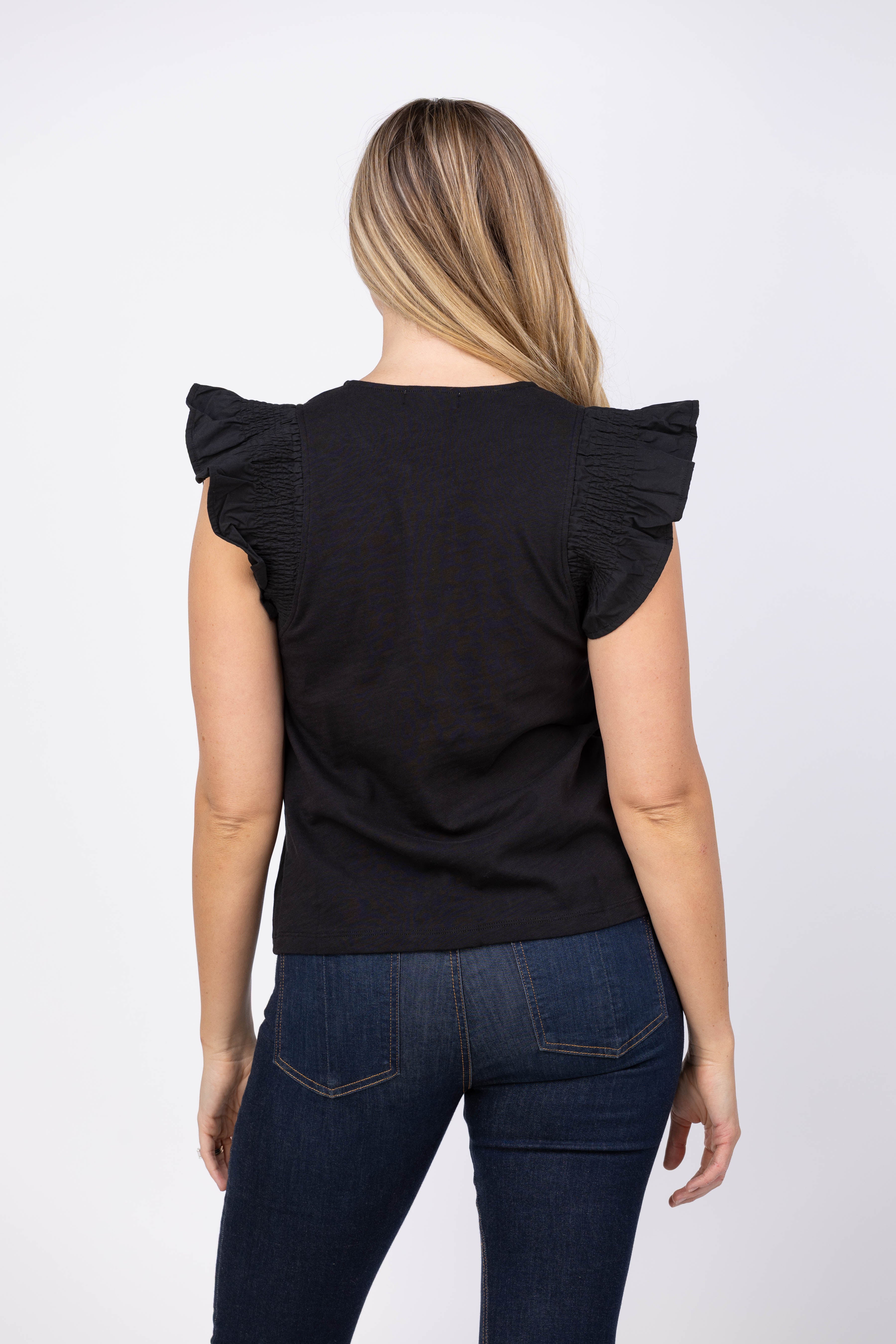NATION LTD Christa Ruffle Sleeve Top in Jet Black
