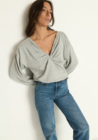 The NATION LTD Jolie Sweater in Heather Grey features a stylish twisted neckline that adds a unique touch to this casual top. Crafted for comfort and effortless wear, it pairs perfectly with your everyday wardrobe, offering both relaxed style and subtle sophistication. Ideal for layering or wearing on its own, this sweater blends cozy fabric with a modern twist, making it a versatile choice for any casual occasion.