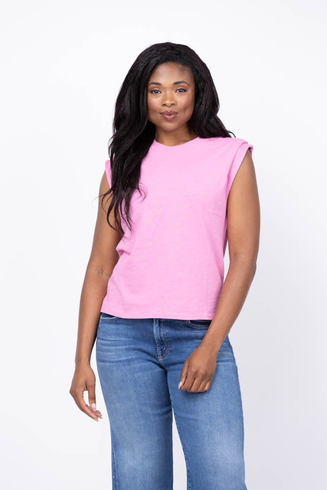NATION LTD Marina Muscle Tee With Shoulder in Dahila