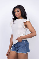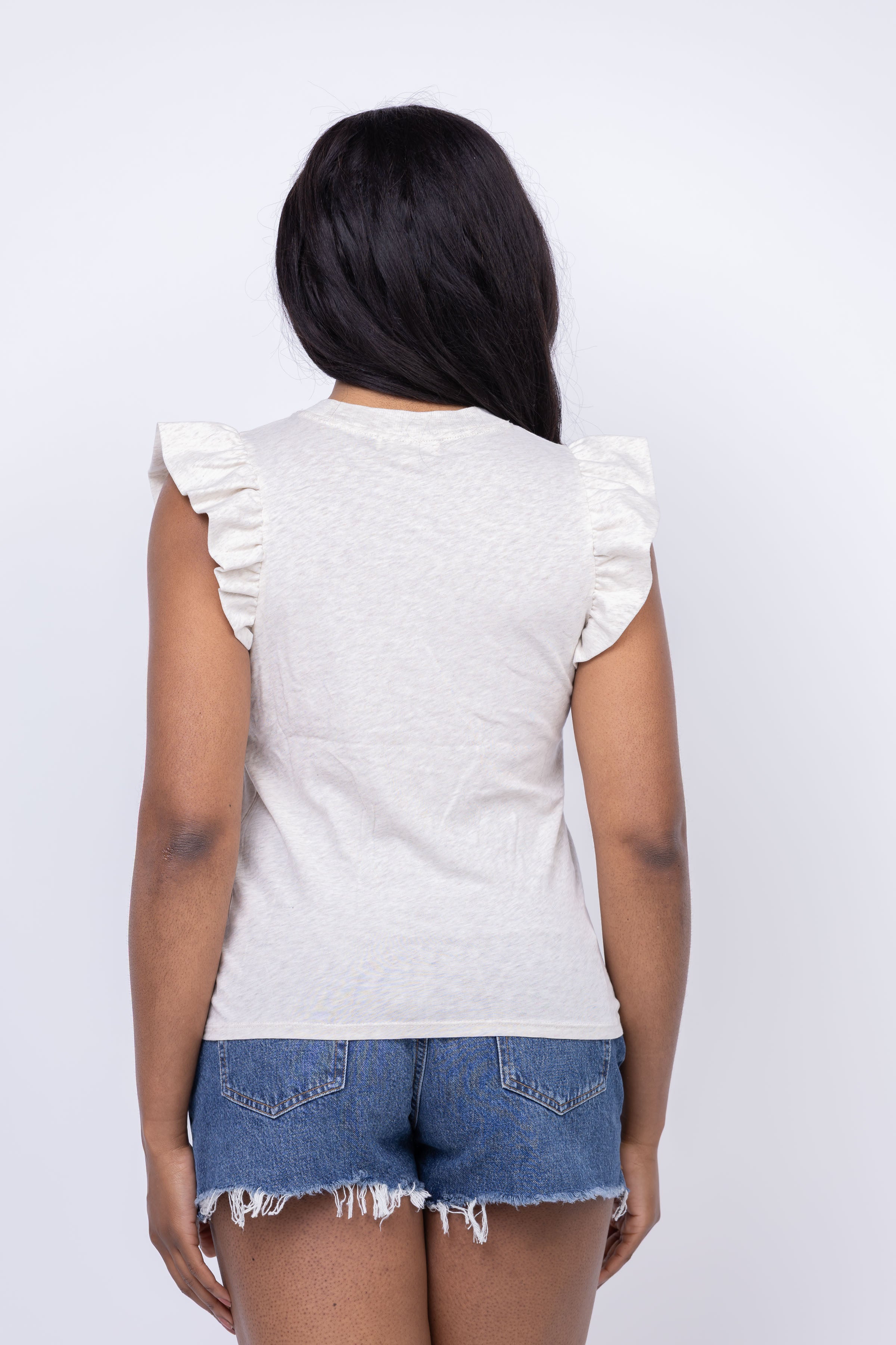 The Nation Ltd Paulette Tank in Heather Oatmeal features charming ruffle sleeves and a comfortable crewneck, making it an effortlessly stylish choice. Perfect for dressing up or down, this versatile tank adds a touch of elegance to any outfit while keeping you comfortable all day long.