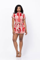 The Alice + Olivia Lucy Button Down Romper in Dark Cherry offers the polished look of a button-down dress with the comfort of hidden shorts. Featuring a flattering tie waist and rolled sleeves, it combines tailored style on top with effortless ease below. Perfect for any occasion, this versatile romper is designed to become your new go-to piece.