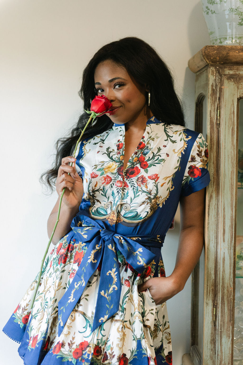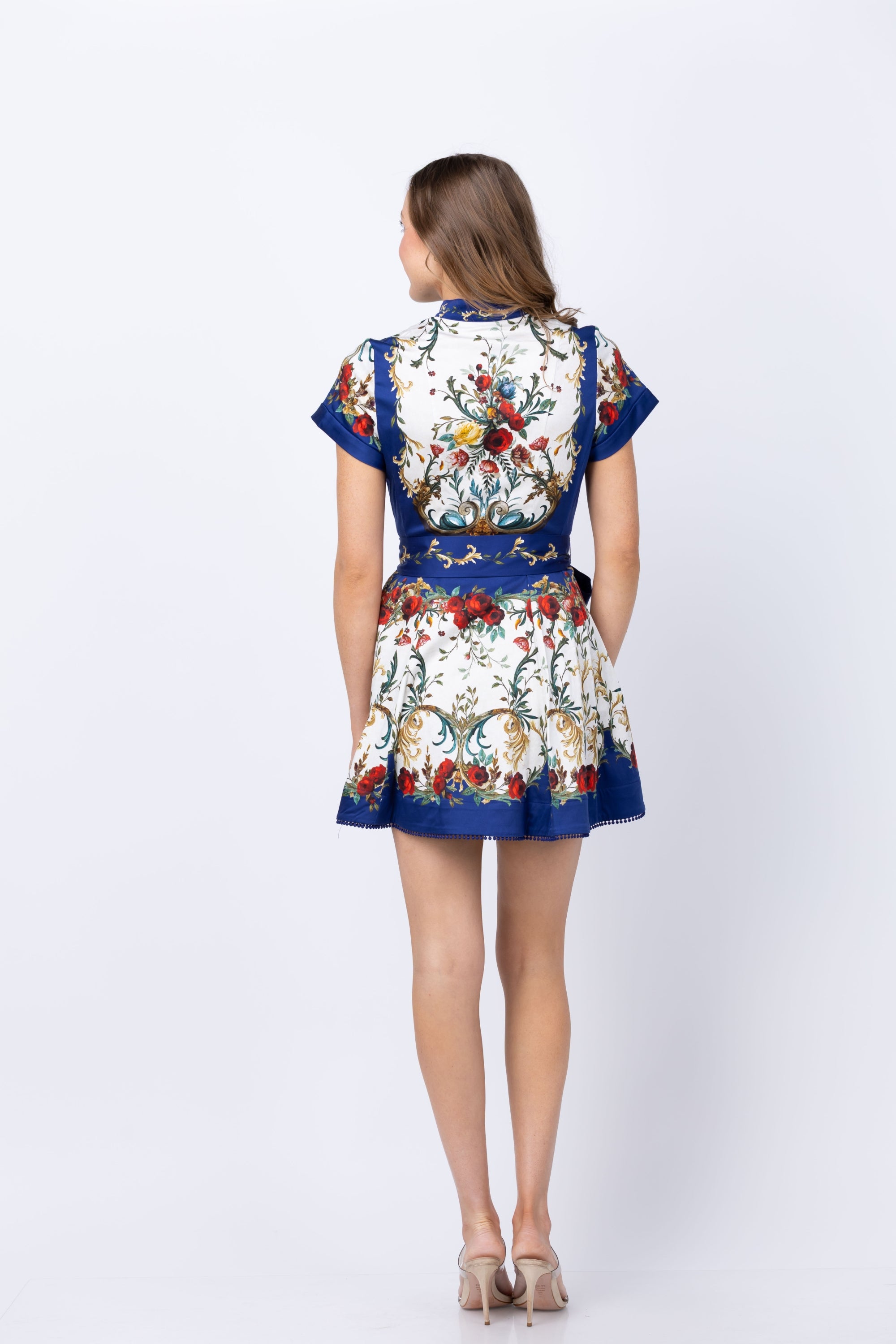 Meet the dress that effortlessly transitions from desk to dinner. The beloved Lucy returns with its signature button-down front and crisp collar, now reimagined with a playful pom-pom trimmed skirt that moves with you. Crafted from breathable cotton poplin in a sophisticated gilded rose print, this mini dress balances polish with personality. The hidden placket keeps lines clean while the subtle pattern adds visual interest without overwhelming. Whether you're dressing it up or down, this is the versatile piece that becomes your go-to for every occasion.