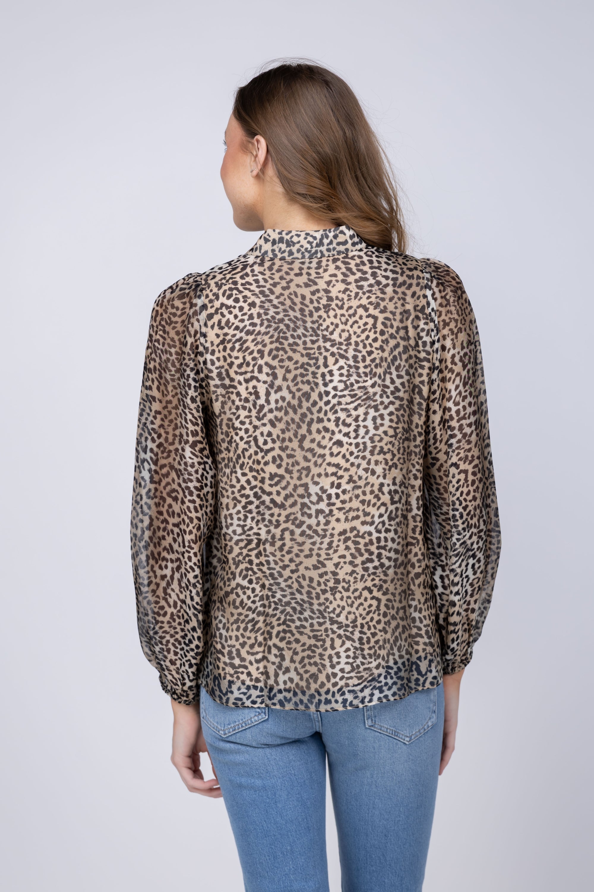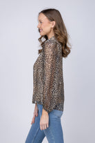 The Presley Top in Golden Leopard transforms any wardrobe with its captivating blend of bold pattern and refined elegance. Crafted from luxurious viscose silk, this statement blouse drapes beautifully with a soft, fluid movement that feels as luxurious as it looks. The warm golden leopard print commands attention while remaining effortlessly sophisticated, anchored by a classic button-down front and pointed collar that keeps the look polished and intentional. Long sleeves with subtle cuff volume add dimension and movement, while the lightweight, slightly sheer fabric delivers an airy sophistication perfect for layering or wearing solo. Whether paired with tailored denim for weekend ease or sleek trousers for evening polish, the Presley Top seamlessly transitions from day to night, making it the versatile investment piece your closet has been waiting for.