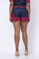 The Benny Short in Midnight Rosaria elevates everyday style with hand-traced paisley florals that dance across pure linen. This high-rise silhouette features a scalloped hem and functional pockets, while a concealed side zipper ensures a polished, tailored fit. Crafted with Christy Lynn's signature attention to detail, it's the perfect standalone piece or pairs beautifully with the coordinating Jane Top. Experience the effortless sophistication of refined femininity meets contemporary design.