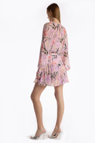 The Billie Dress captures effortless elegance in a lightweight, airy mini silhouette. Soft pastels florals dance across a dreamy lavender-pink canvas, evoking a romantic watercolor aesthetic. The gently draped bodice pairs with a gracefully flounced skirt that sways with movement, while long blouson sleeves add polish and balance to the shorter hemline. Versatile and refined, this dress transitions seamlessly from brunch gatherings to spring celebrations, delivering that perfect blend of feminine charm and understated sophistication.