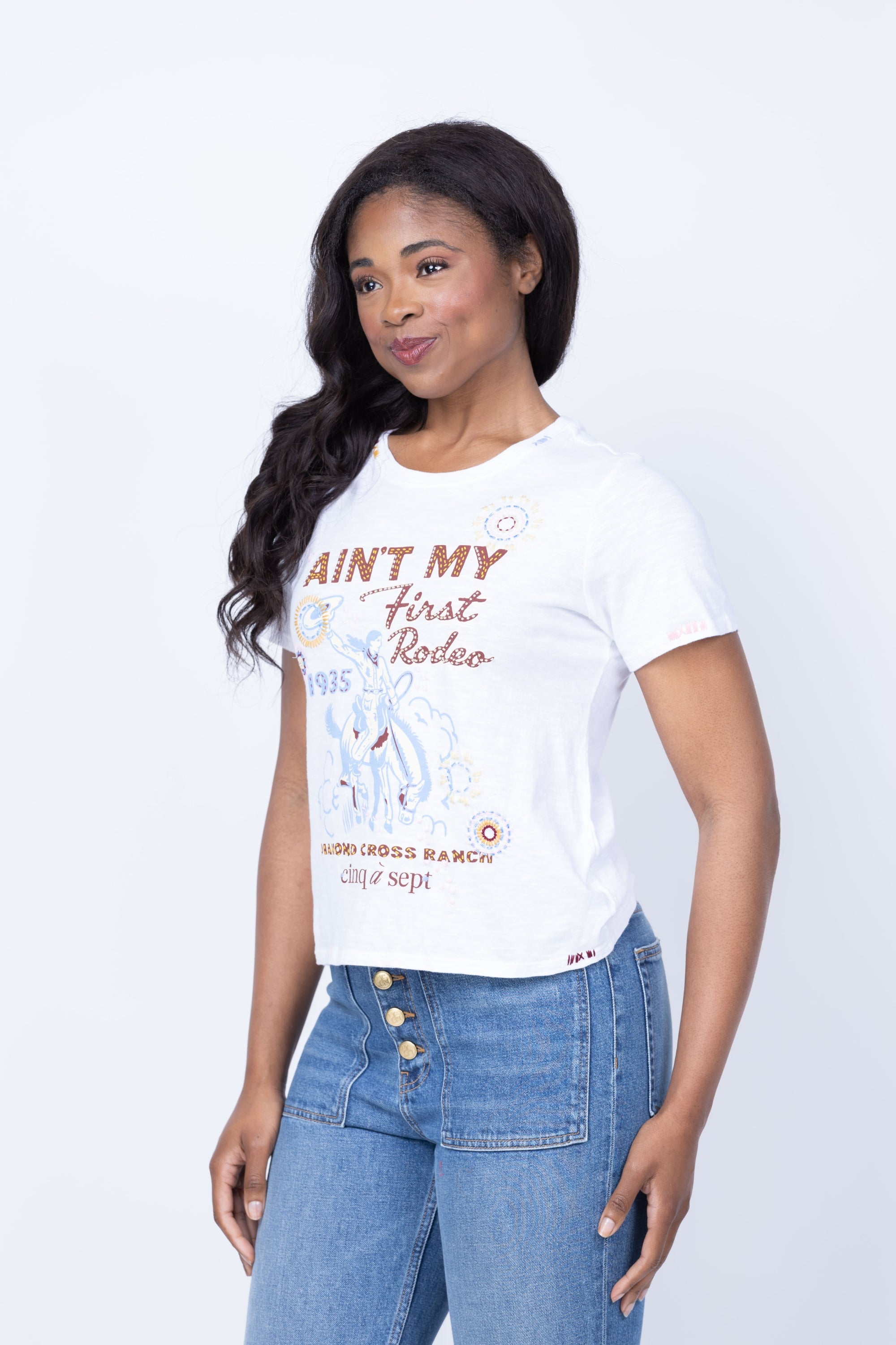 Cinq a Sept Bespoke Aint My First Rodeo Shrunken Tee in White