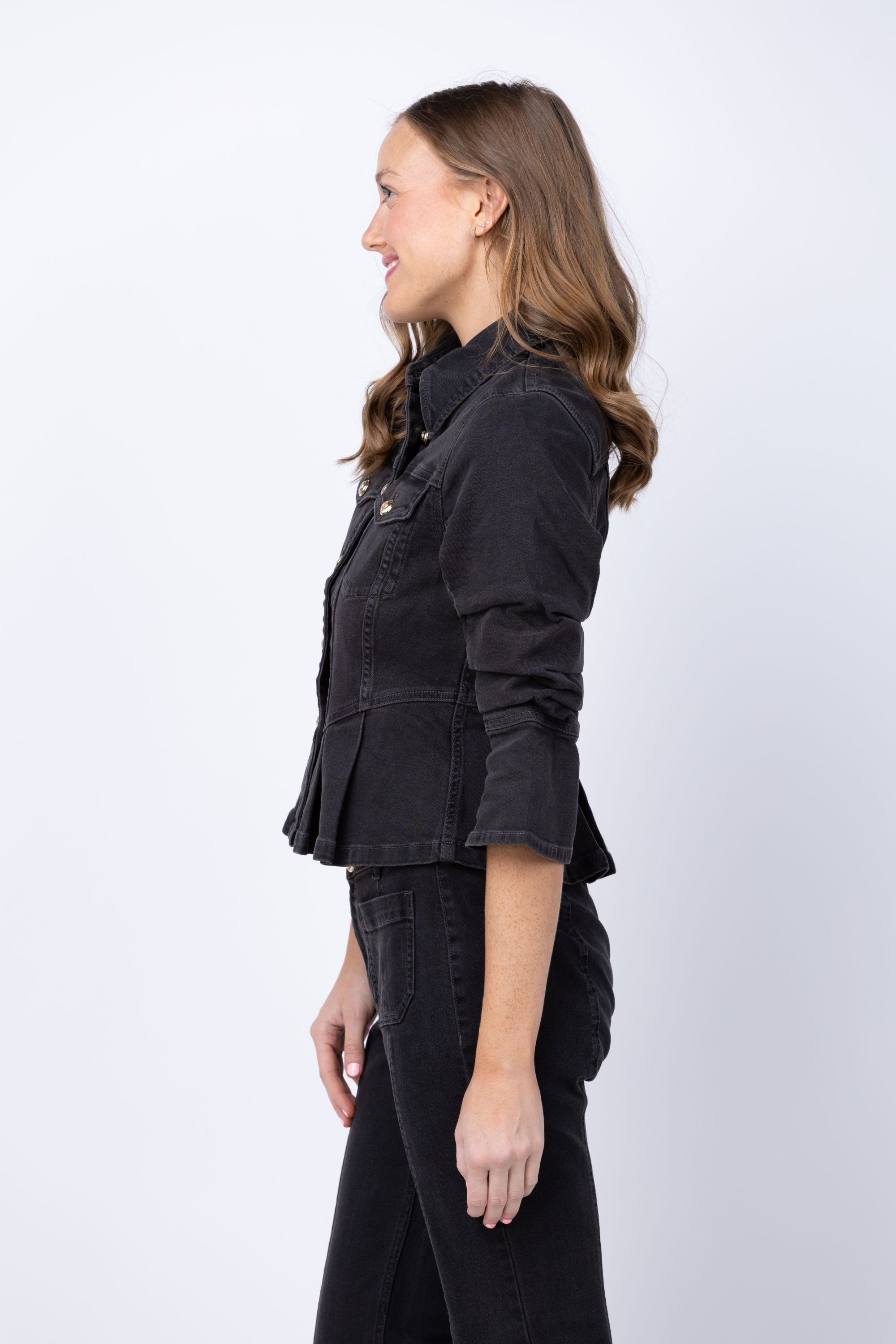 Cinq à Sept Dahlia Denim Scrunched Seraphine Jacket in Charbon