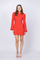Elevate your wardrobe with the Cinq à Sept Lea Dress in Bisou, a sophisticated piece that seamlessly transitions from office to evening. This polished dress features a refined point collar and long sleeves with elegant triple-button cuffs for a tailored silhouette. The front partial button placket adds understated charm, while decorative faux buttoned flap patch pockets provide both style and practicality. A structured back yoke ensures a flattering fit that moves with you. Perfect for those who appreciate timeless elegance with modern details.