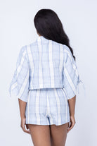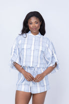 Hevron Eva Top in Linen in Blue Plaid