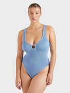 Hunza G Celine Swimsuit With Tonal Hoops in Cornflower