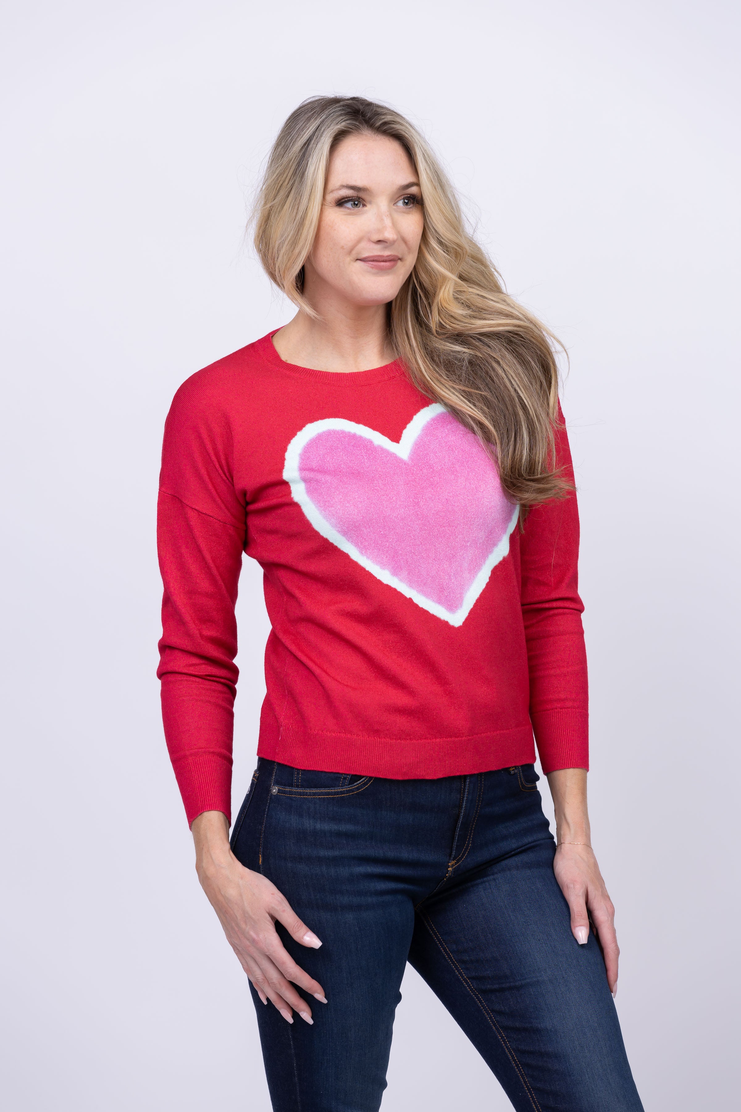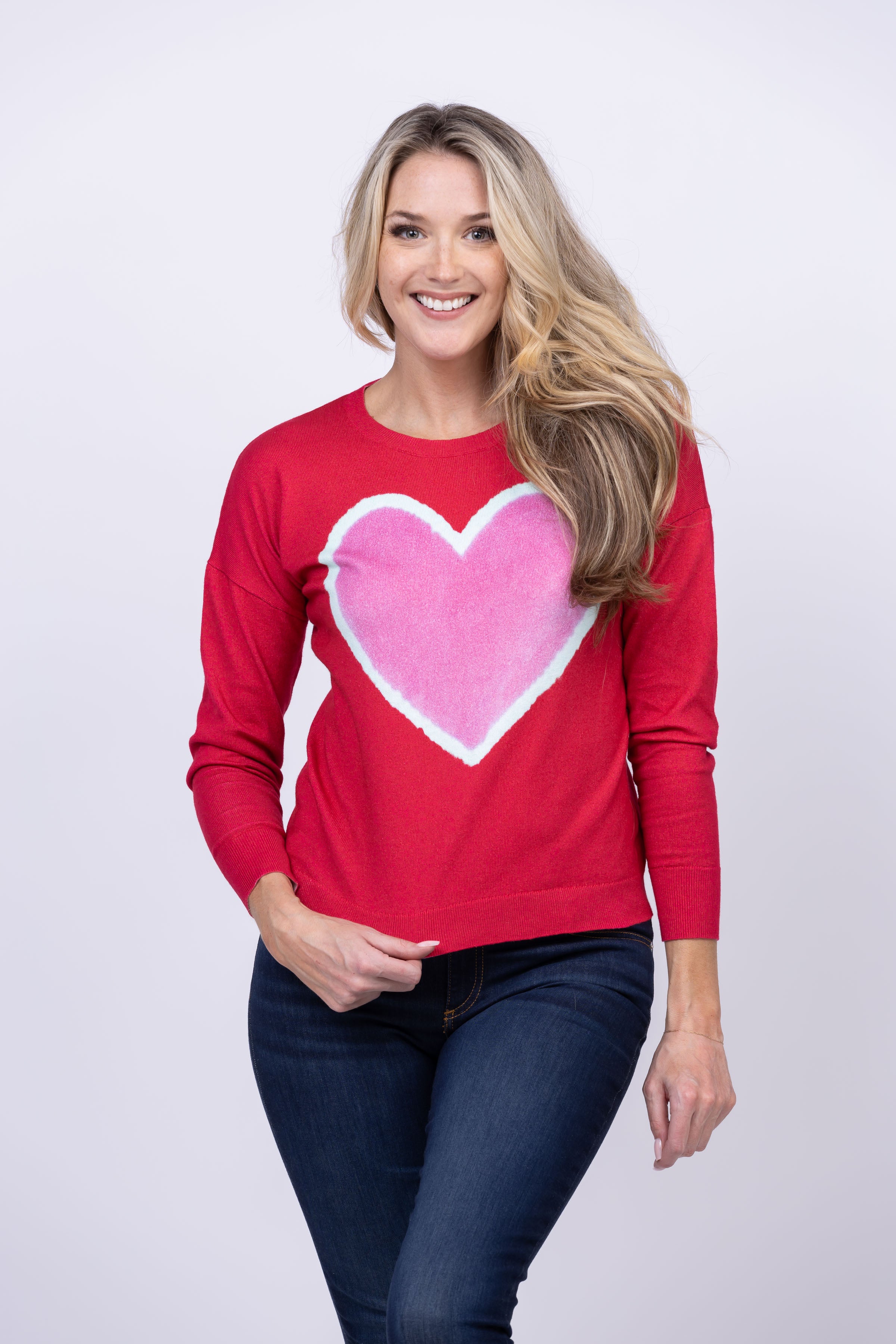 Fall in love with our J. Society Enzyme Wash Heart Crew in Red! This perfect Valentine's sweater is sure to make a sweet statement with its pop of red. Show your special someone some love this season and make them yours!