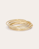 Stack on the sparkle with the Rena, a luxurious set of connected cubic zirconia bangles that catch the light with every movement. This stunning collection brings instant glamour to party looks or elevates everyday silk blouses with effortless sophistication. Whether you're dressing up for a special occasion or adding a touch of radiance to your everyday style, these brilliant bangles deliver the perfect amount of dazzle and elegance.