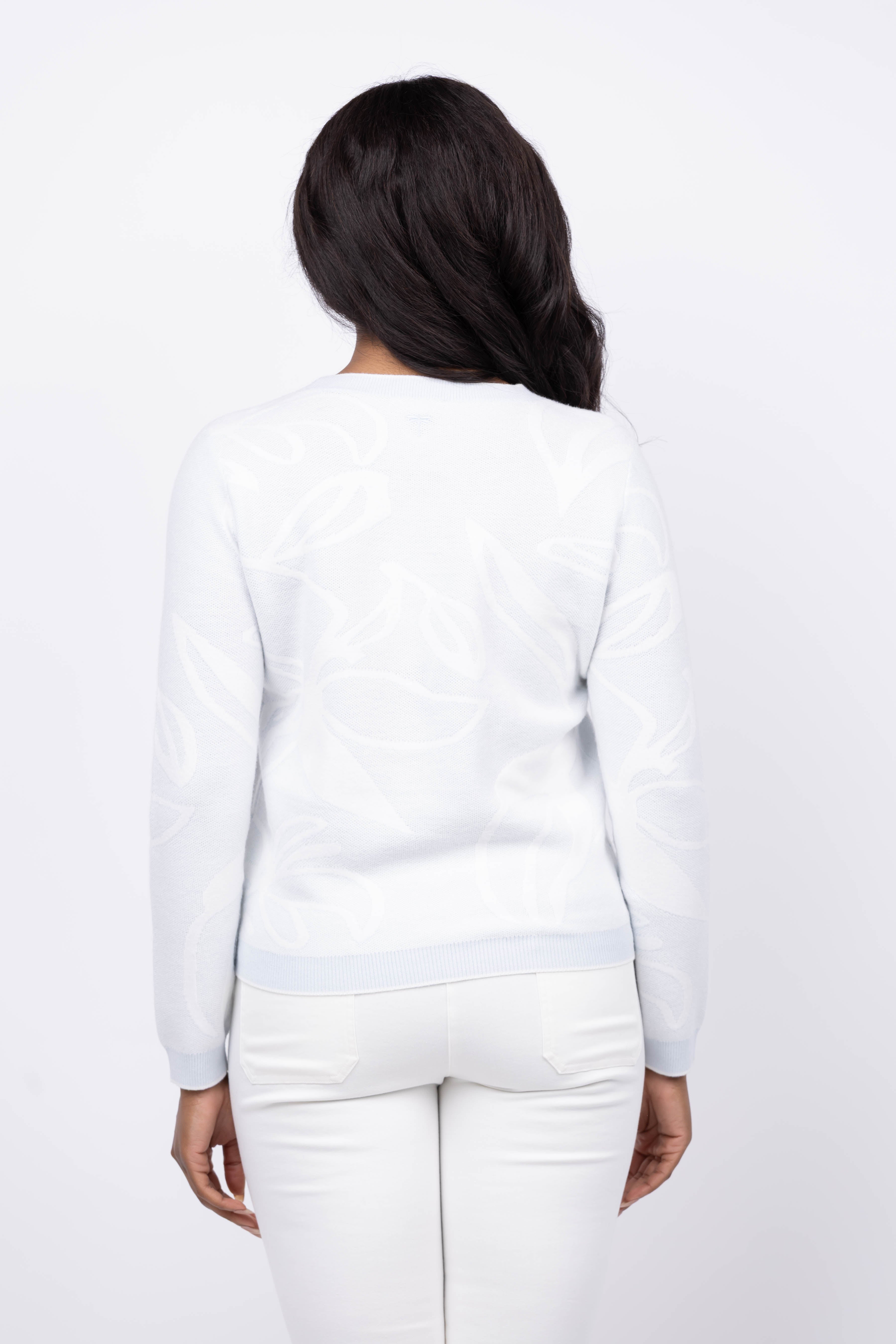 Elevate your wardrobe with the Tyler Boe Conner textured sweater in Dream Blue. This thin, lightweight piece features a soft sky-blue base accented by a white abstract leaf design, blending subtle artistry with effortless style. Perfect for layering or wearing alone, it offers breathable comfort and refined texture that brightens any outfit with a fresh, modern touch.