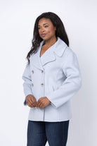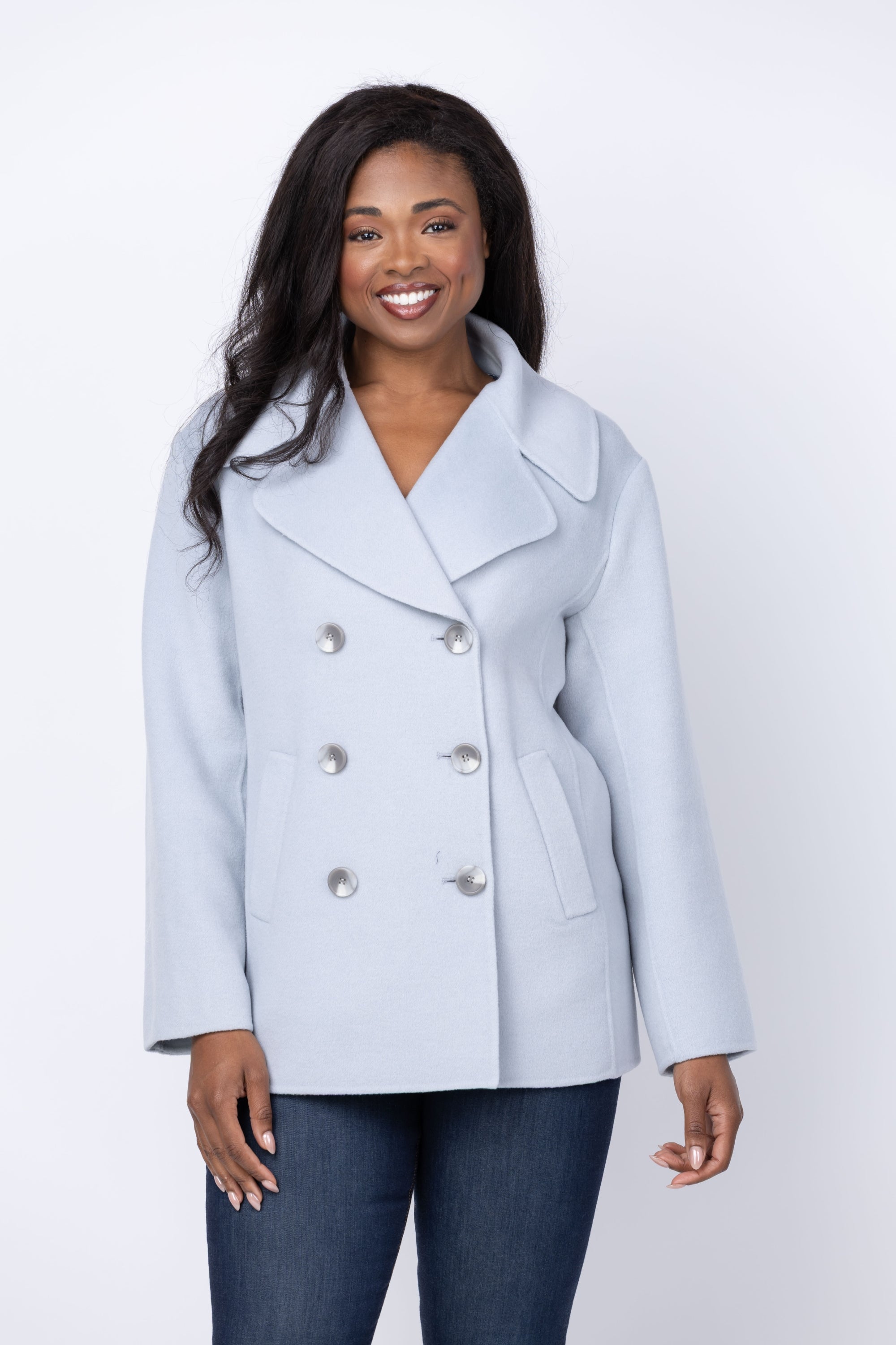 Elevate your outerwear collection with the Diana Jacket, a contemporary take on the timeless peacoat. Crafted from luxurious wool-cashmere blend, this piece features a refined double-breasted silhouette with striking notched lapels that command attention. The sophisticated slate gray hue pairs effortlessly with any wardrobe, while horn-effect buttons deliver an understated luxury touch. Whether layered over professional attire or casual basics, the Diana Jacket transitions seamlessly from season to season, making it the investment piece every discerning wardrobe deserves.