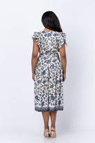 Elevate your everyday wardrobe with the Ulla Johnson Kairi midi dress—a timeless piece that effortlessly transitions from day to night. This cotton blend beauty showcases a flattering A-line silhouette with a graceful hem that falls below the knee, while the split V neckline with self-tie detail adds an elegant touch of sophistication. Flutter sleeves bring a romantic flair, and practical side pockets keep you organized in style. The printed pattern adds visual interest to the porcelain colorway, making this slip-on dress a versatile essential for any occasion.