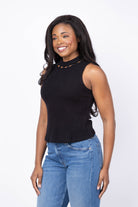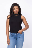 Elevate your everyday wardrobe with this Design History Pearl Detail Top in Black. The sophisticated pearl embellishments add a touch of refined elegance to a timeless black silhouette, making it perfect for both casual outings and polished occasions. Versatile and chic, this top pairs effortlessly with your favorite jeans, skirts, or trousers. The pearl details catch the light beautifully, transforming a simple black top into a statement piece that showcases your impeccable style. A wardrobe essential that delivers understated luxury.