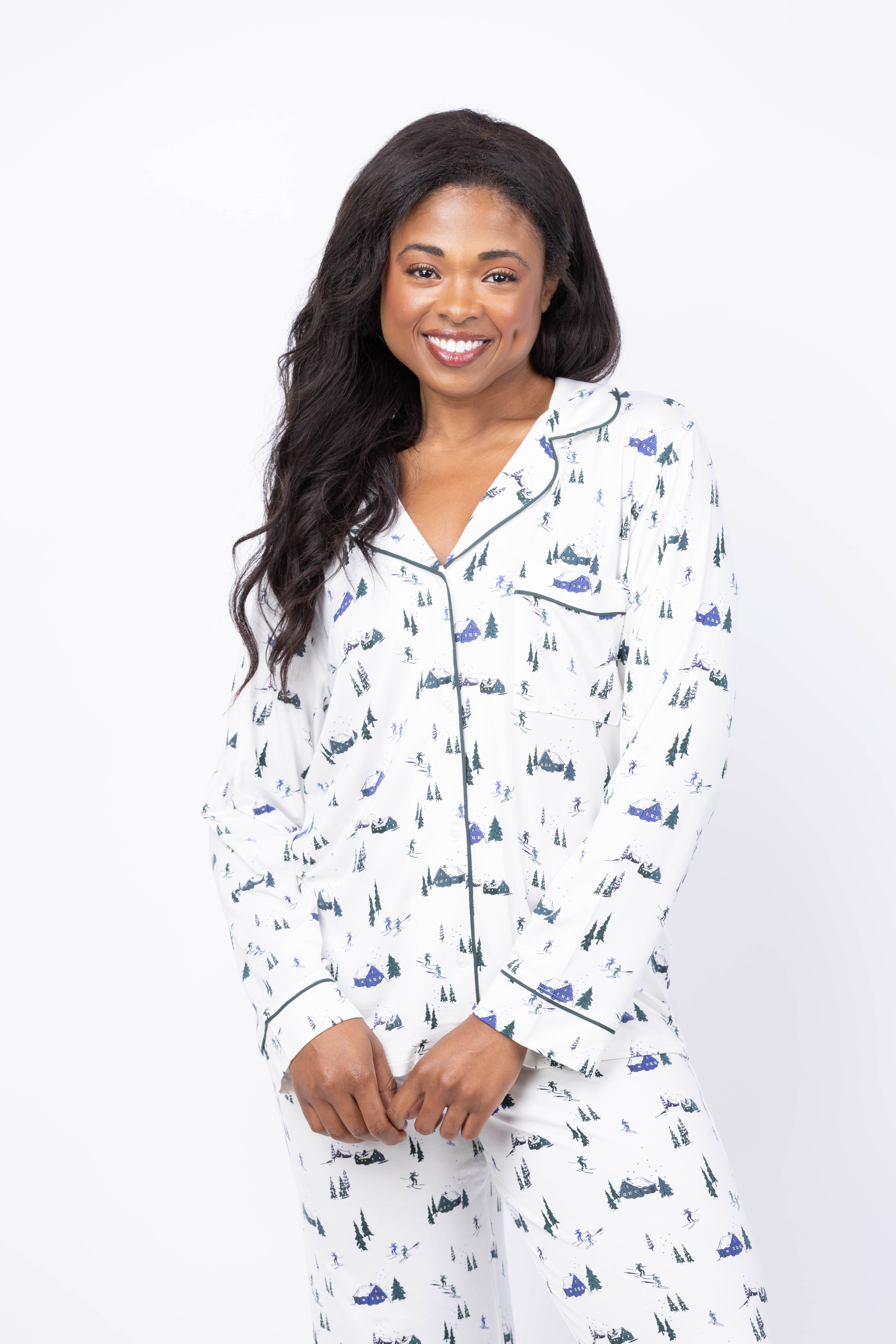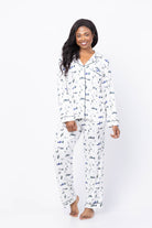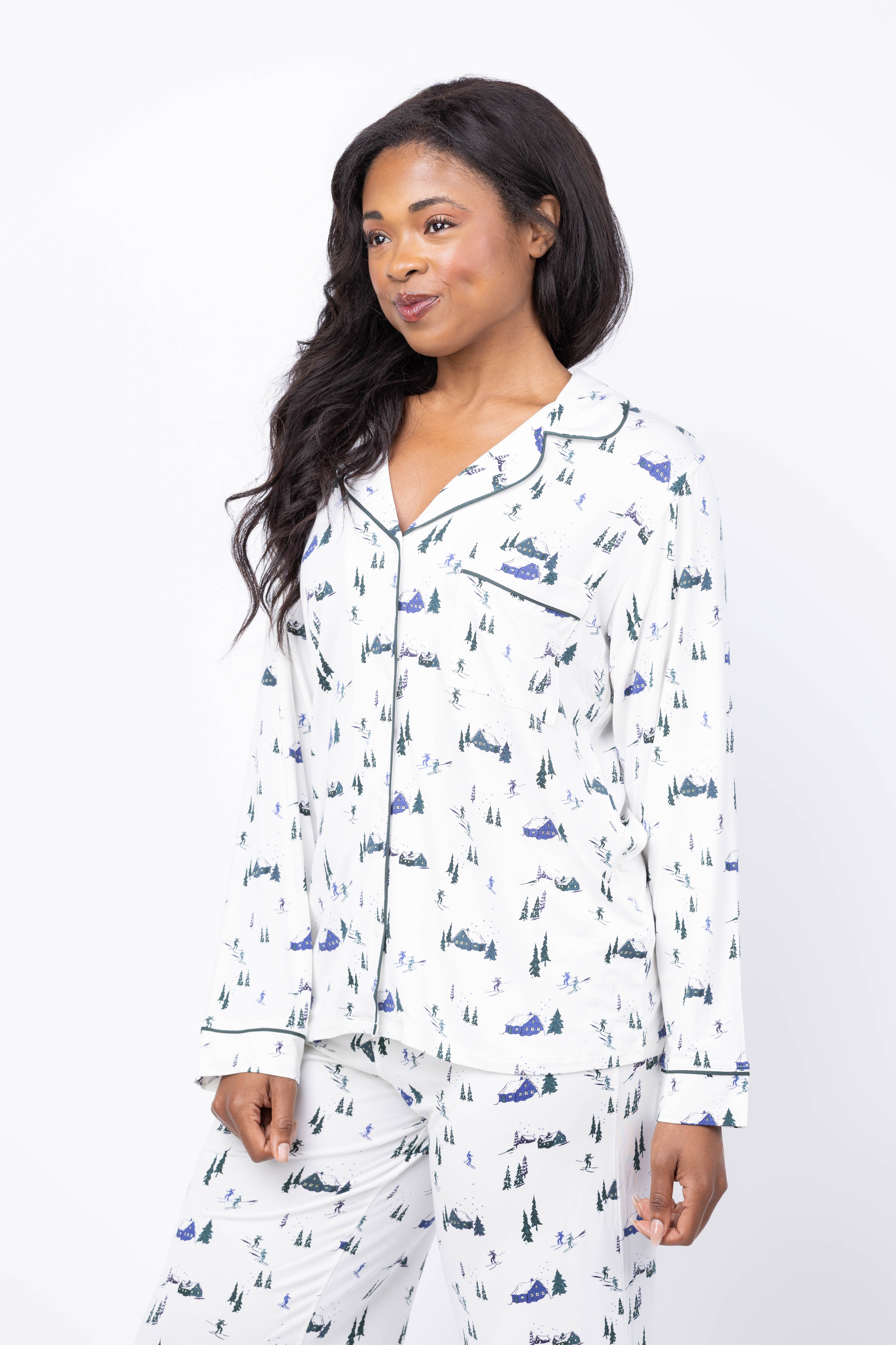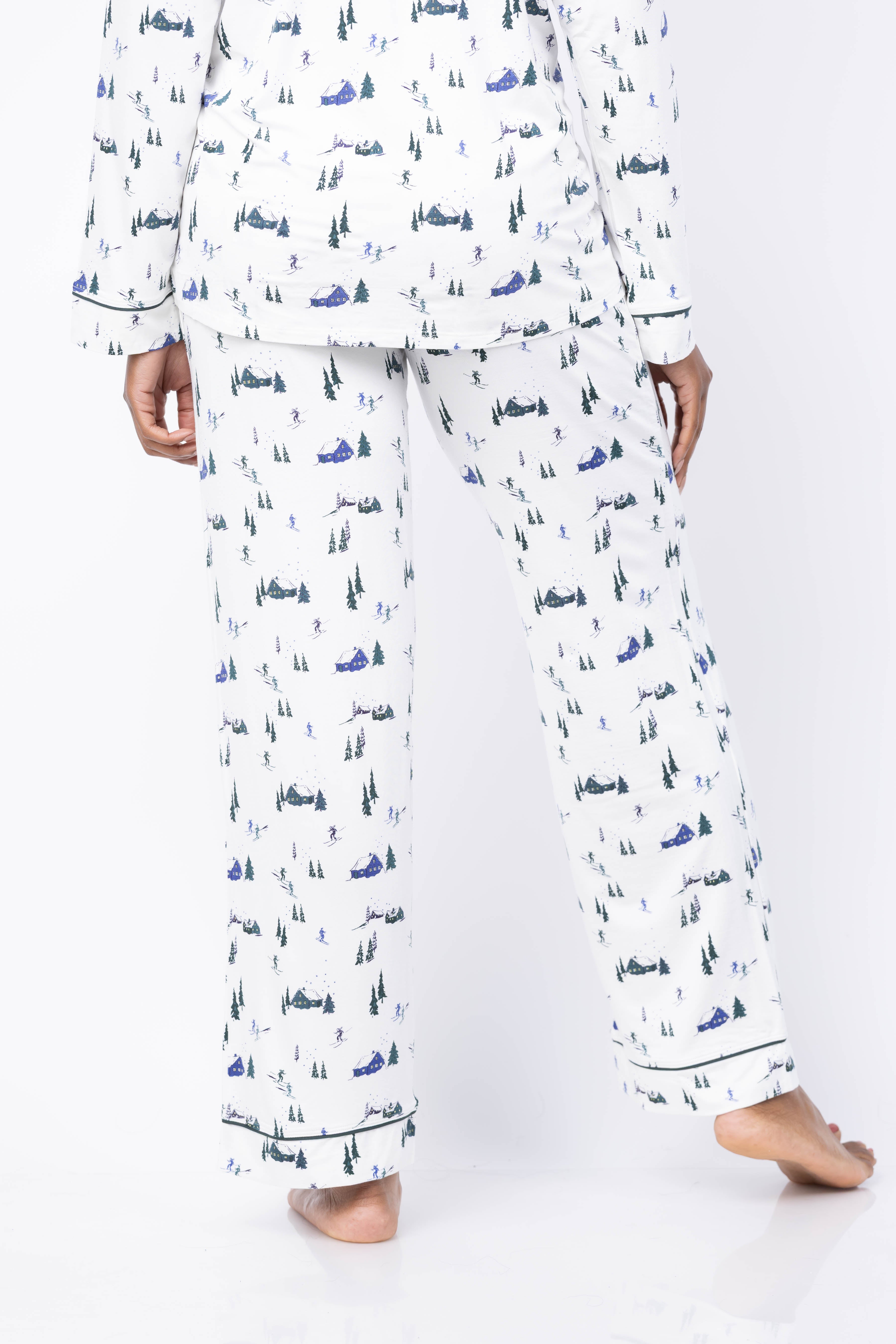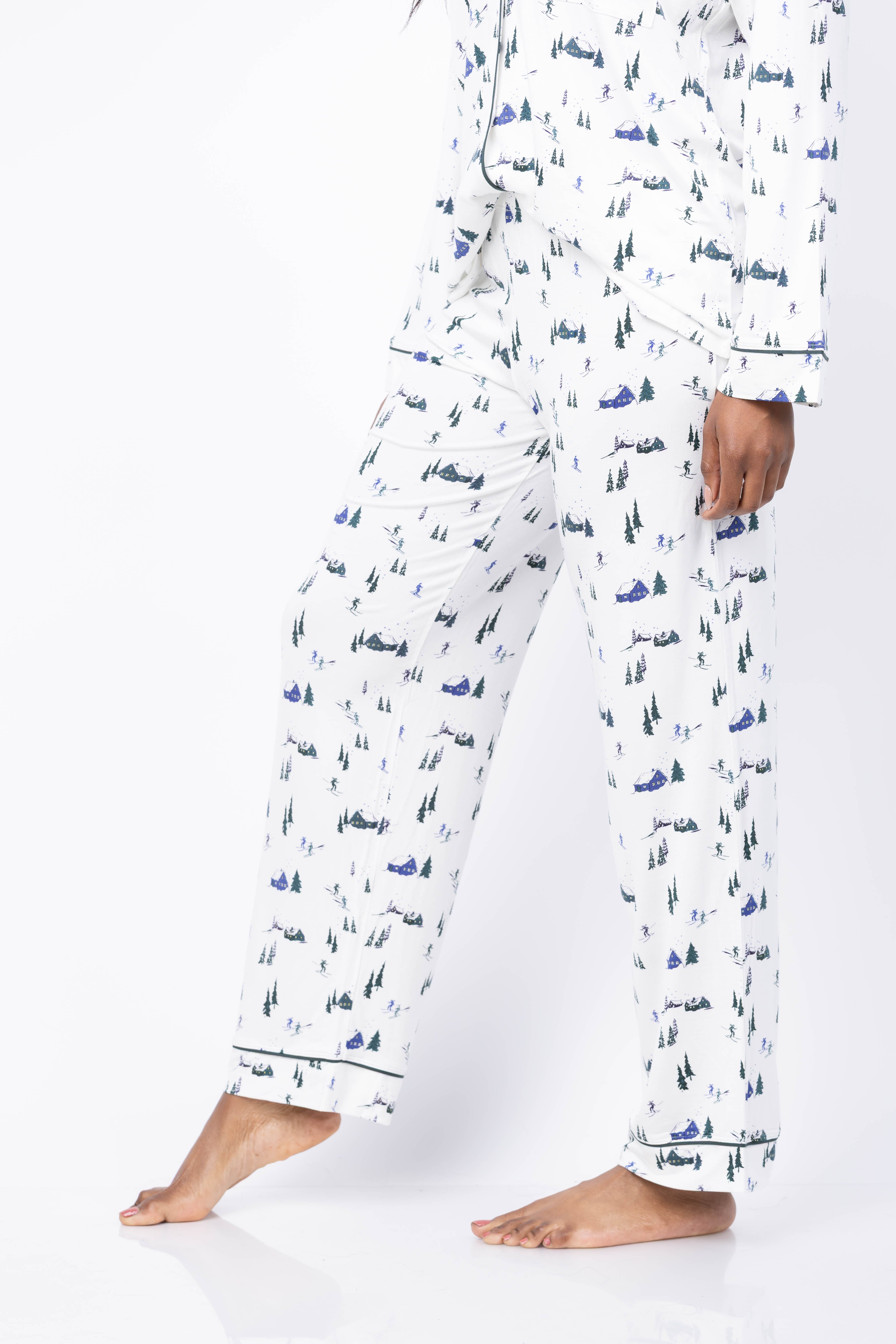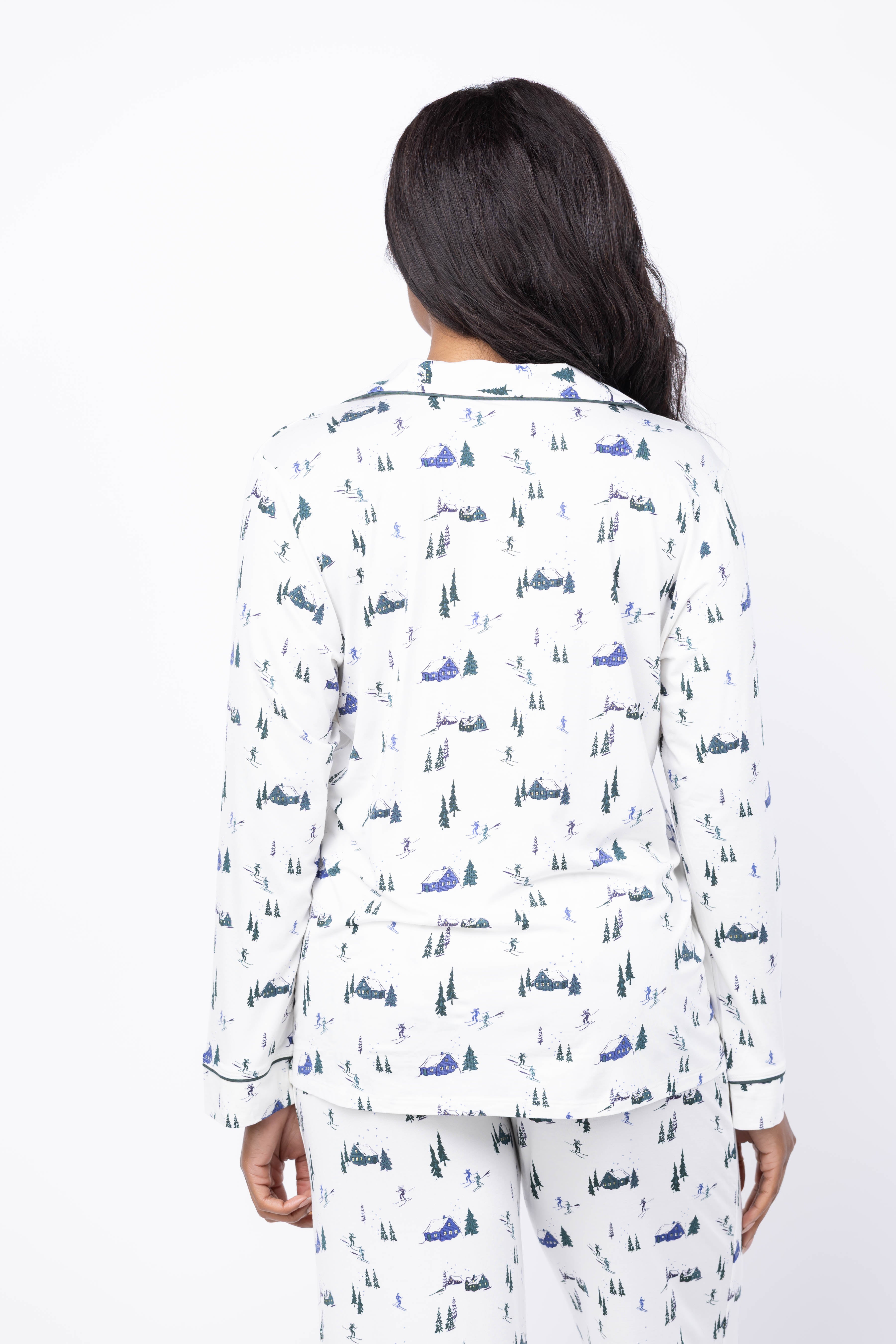 Eberjey Gisele Printed Long Pj Set in Ski Chalet Ivory/Pine
