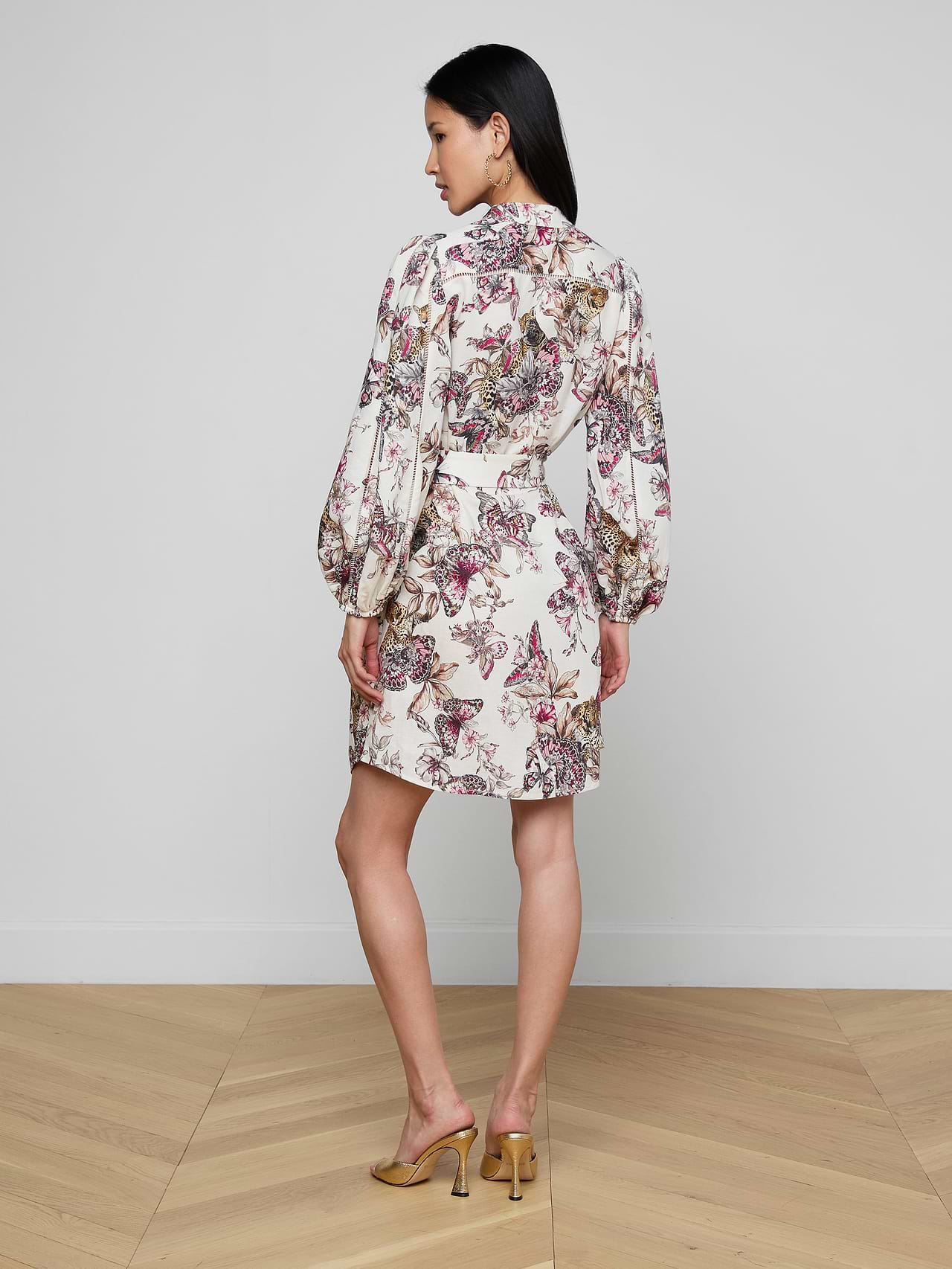 The Kiersten brings bold energy to daytime dressing. Crafted from a breathable linen blend, this dress features a vibrant butterfly jungle print, puffed long sleeves, and a matching belt that cinches the silhouette. Feminine with a strong point of view, it's designed to be noticed without trying too hard. Practical side pockets and button closures complete this statement piece.