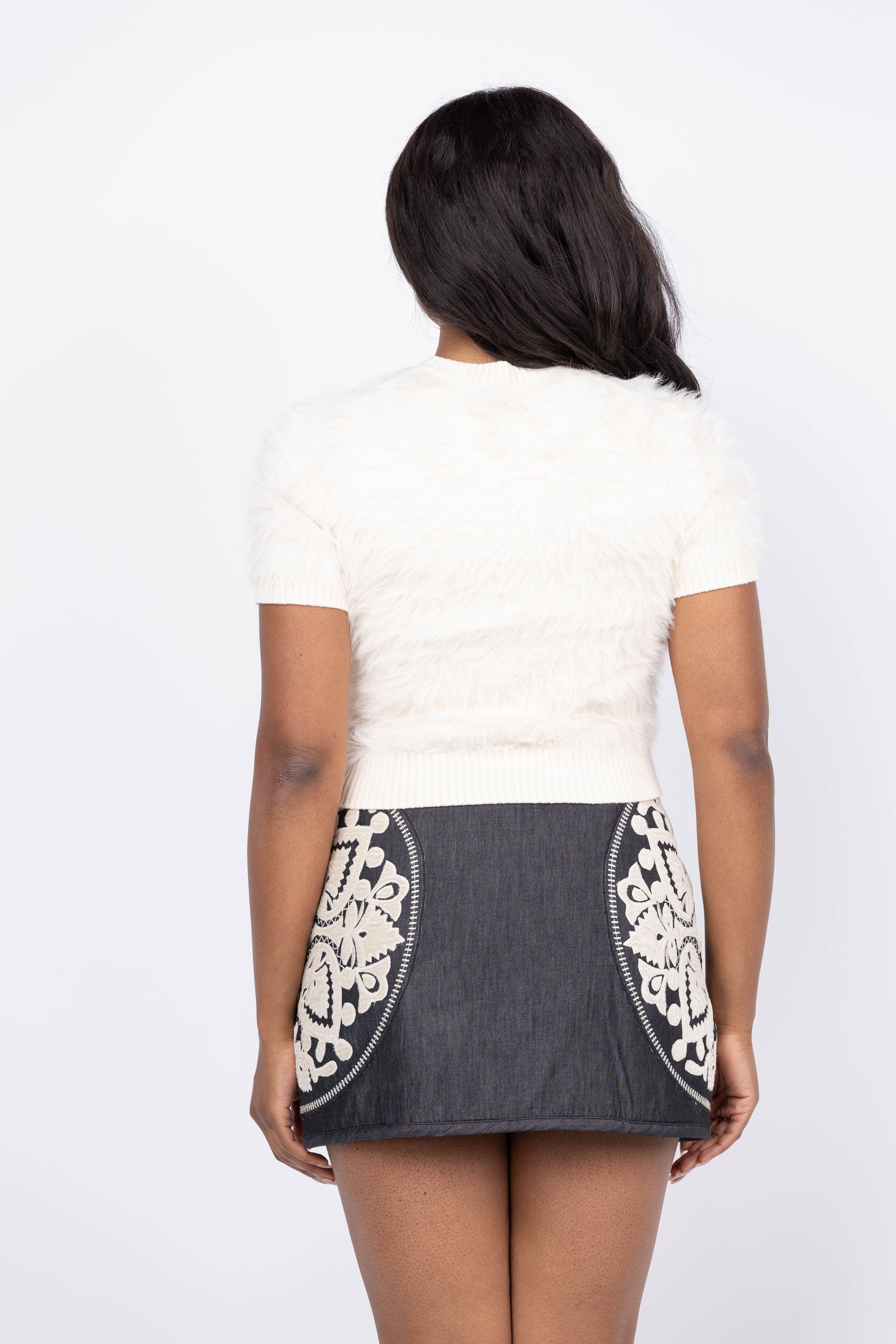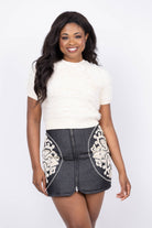 This Lilla P Short Sleeve Brushed Crewneck in Ivory combines classic comfort with subtle texture from its super-soft brushed yarn. Designed with ribbed trims and a flattering shorter length, it effortlessly complements everything from casual denim to tailored pants. Perfect for layering over dresses or wearing solo, this versatile sweater adds a cozy yet refined touch to your wardrobe, ideal for holiday events and everyday style.