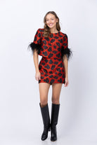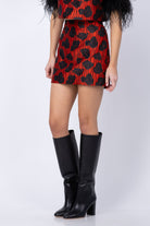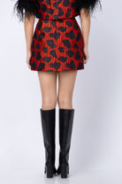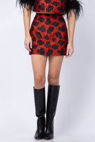 Crafted from sumptuous poppy-print jacquard, this mini skirt brings festive flair to your winter wardrobe. The striking black and red colorway pairs perfectly with our Ruthe Poppy Jacquard Short Sleeve top for a coordinated look that's equal parts fun and cozy. Whether you're heading out for a night on the town or settling in for a seasonal celebration, this playful piece delivers style with an undeniable charm.
